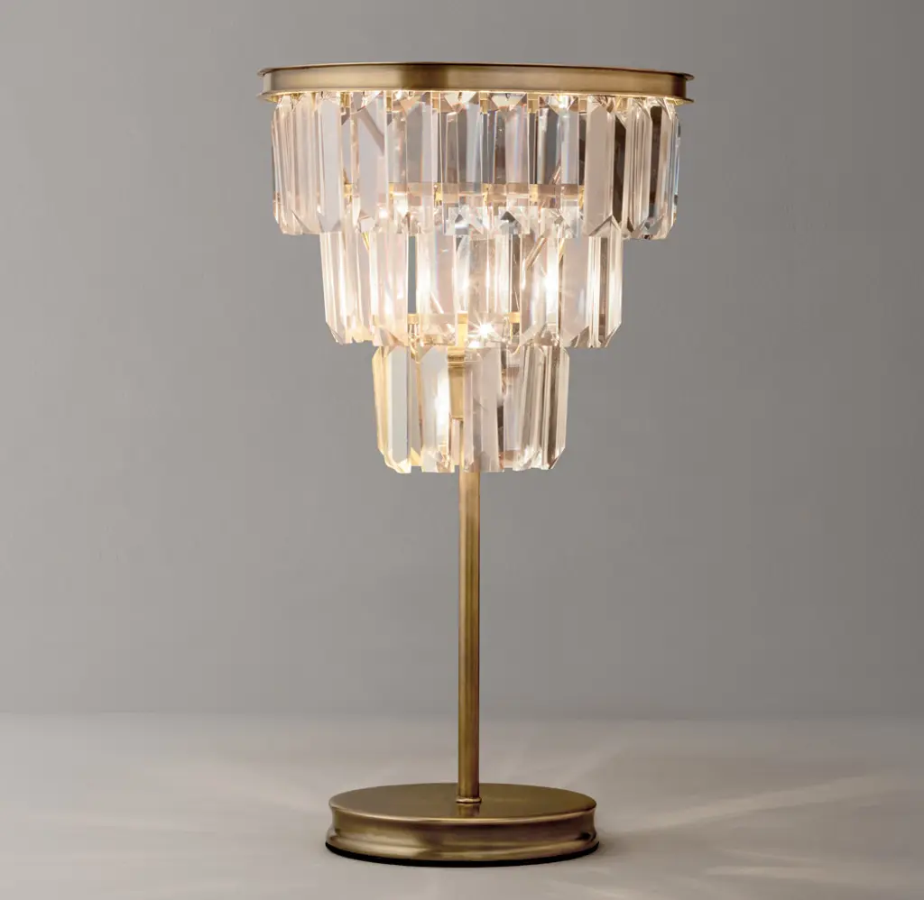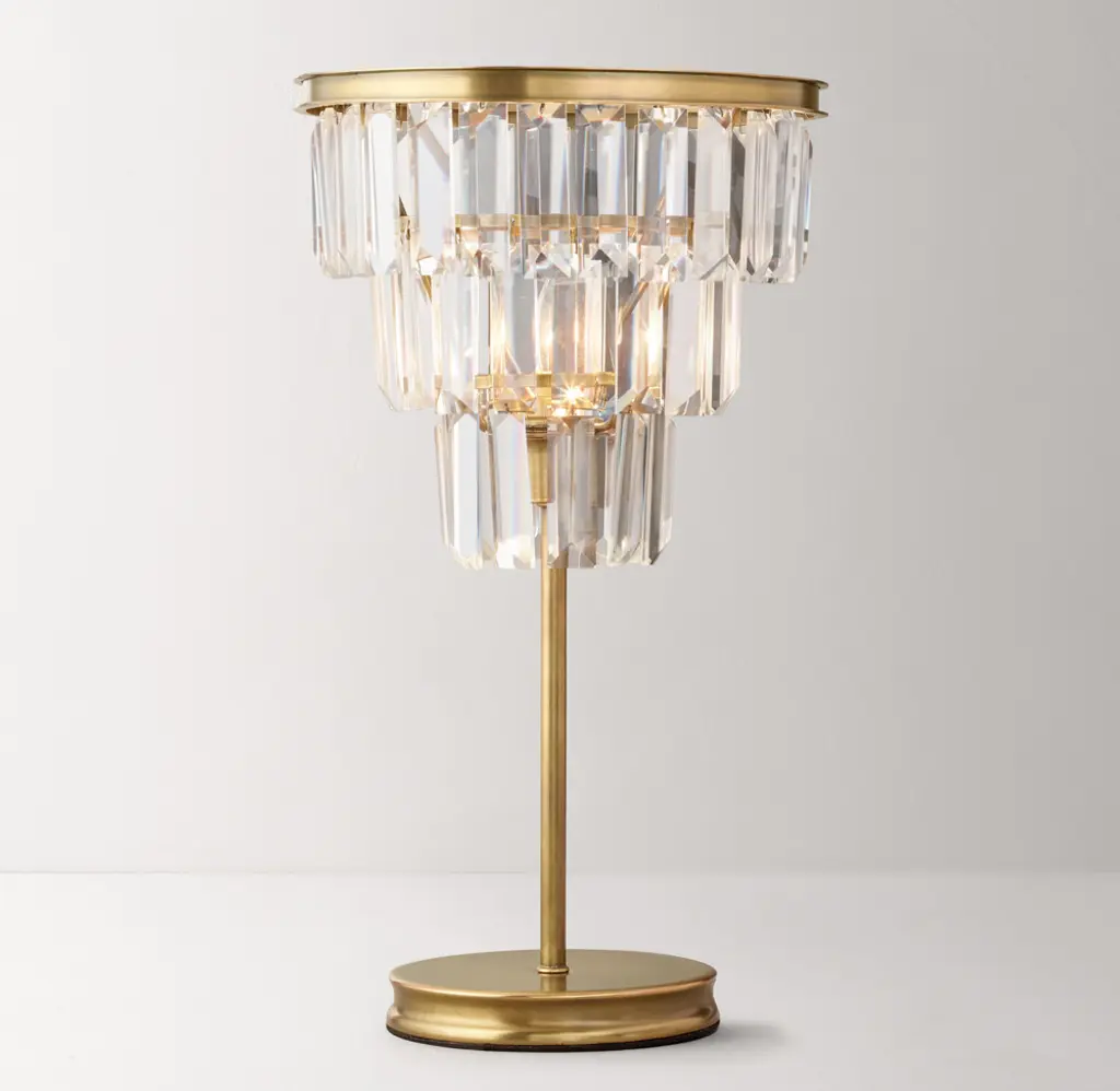 Inspired by the cool precision and unabashed luxury that typified the Hollywood Regency style of the 1920s and 1930s, our collection features graduated tiers of rectangular cut crystals suspended from an Antiqued Brass frame. SHOP THE ENTIRE COLLECTION