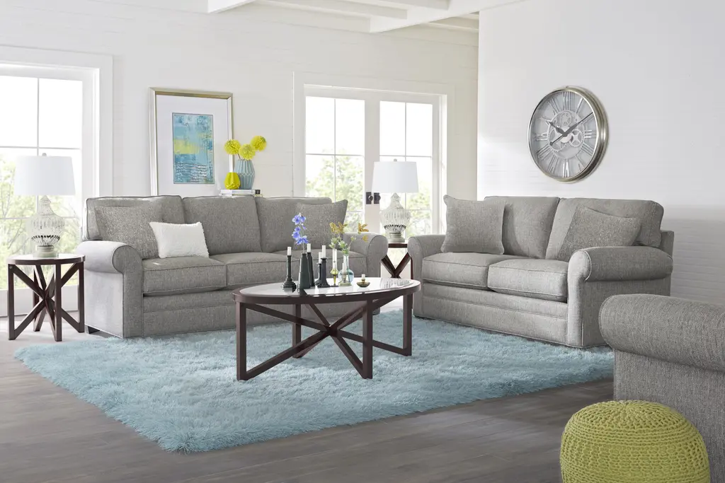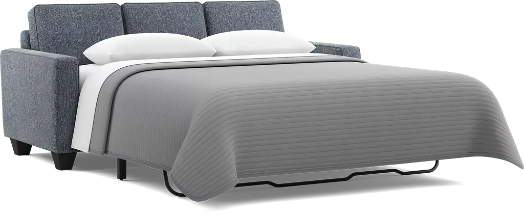 Providing a relaxed atmosphere and open, inviting ambiance, the Alanis Bay living room exudes everyday comfort with a sophisticated undertone. Upholstered in a woven fabric, this transitional room features plush seating, welted details, stylish track arms, tapered block legs and a padded outside frame. Loose seat cushions allow for easy maintenance and adjustment. Tucked away in the sofa is a Sealy Royale mattress that can create a comfortable space for overnight guests. Upholstery: 100% Polyester. Cleaning Instructions: Use water-based cleaning agents or foam. Tables and lamps not as shown in room image. Small accent pillow not included.