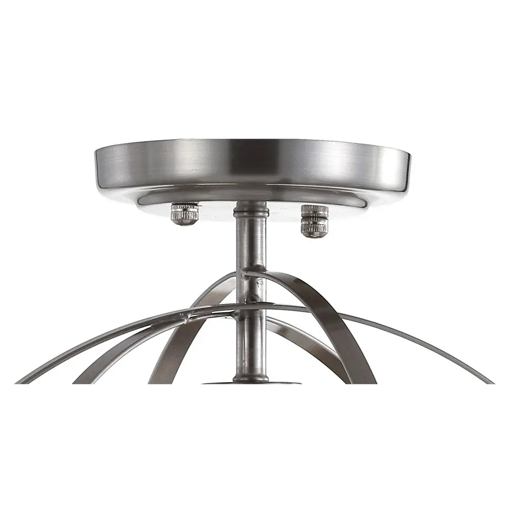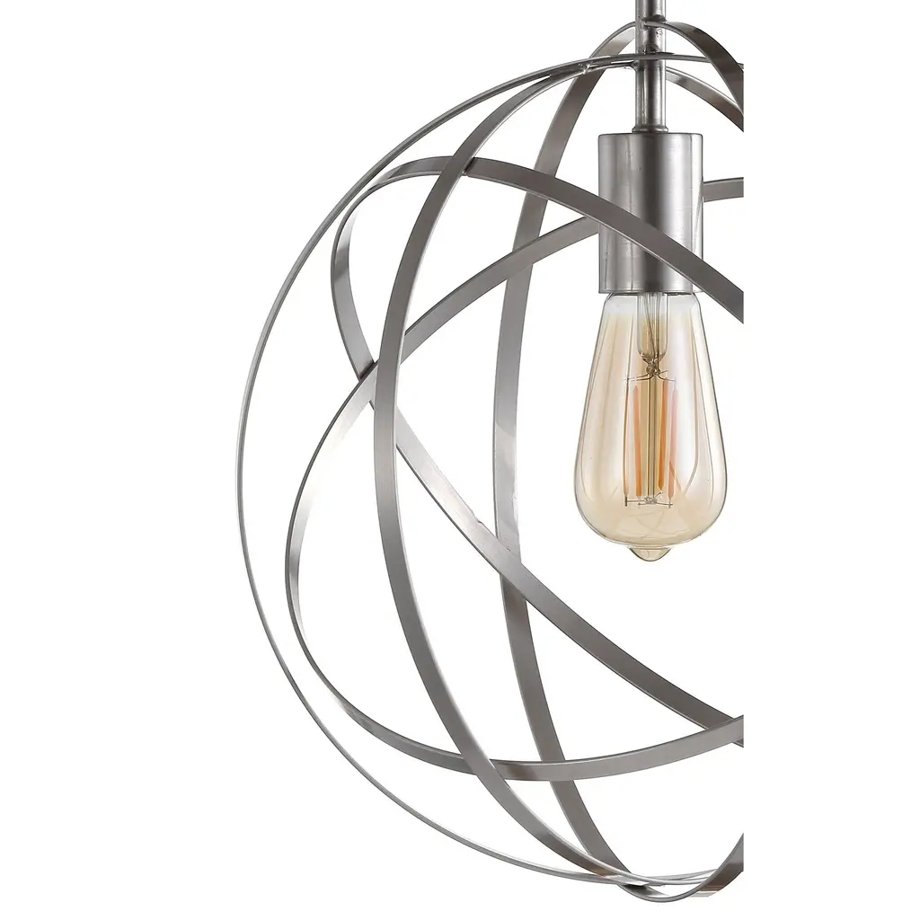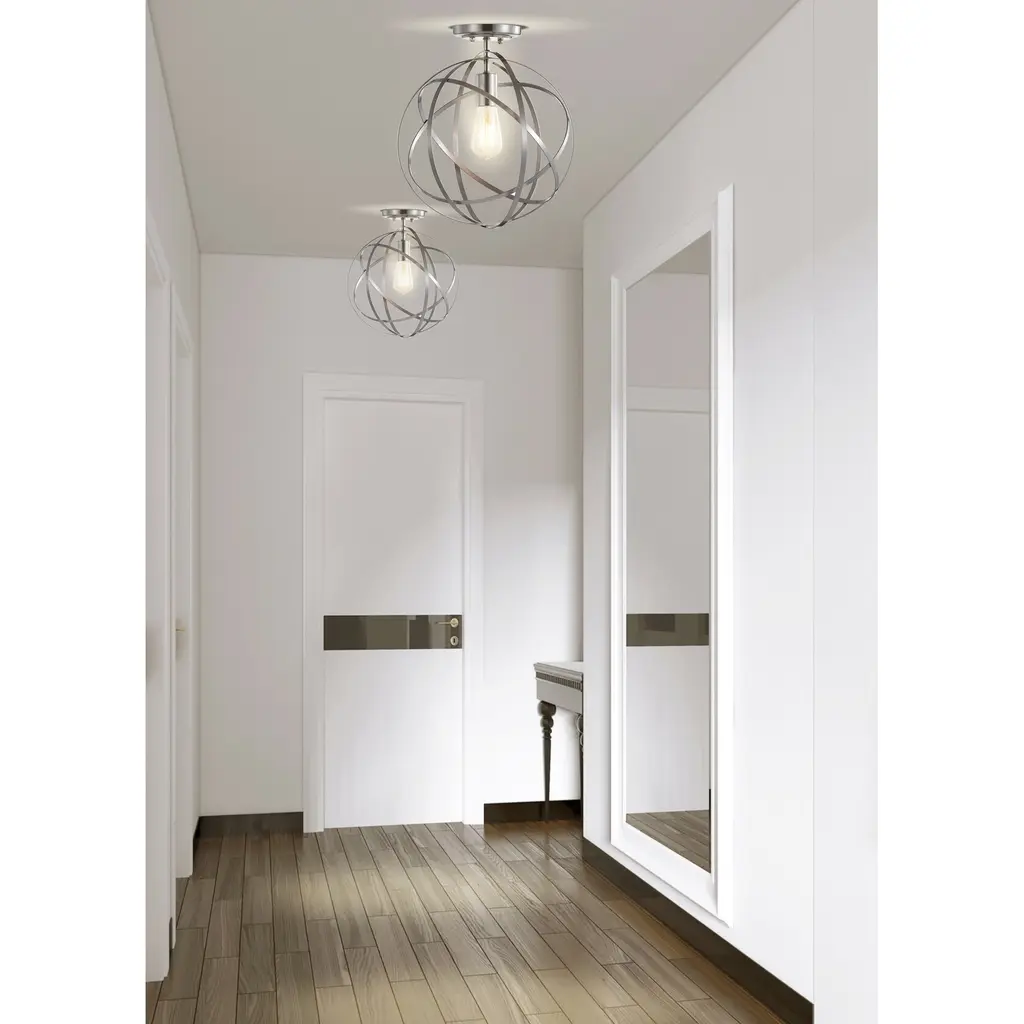 Rings of metal are expertly soldered together to create a spherical frame for the bulb of your choice -- incandescent, LED, or CFL. We love incorporating novelty bulb silhouettes or filaments for added interest, and one LED (as pictured) is included. Especially stunning in a breakfast nook or small room, with only a 15" depth, this is a semi-flush mount fixture that packs a lot of style into a small space. Features:Dimensions:About us:You see a lamp.We see a decorative work of art.A perfectly curved shade casts a dramatic shadow on a floor. A silk cord you never want to hide. LED lightbulbs: as easy on the environment as they are on the eyes. The JONATHAN Y Lighting collection considers every detail from impeccably sourced materials to designer styling. And our prices are so attractive, we've transformed a functional necessity into a fashion accessory.JONATHAN Y Lighting - a fashion revolution in home decor.