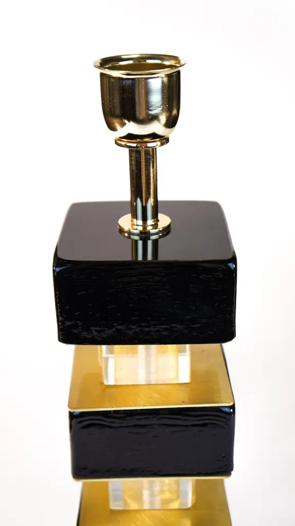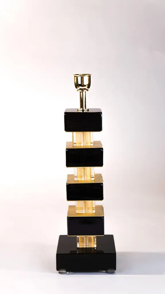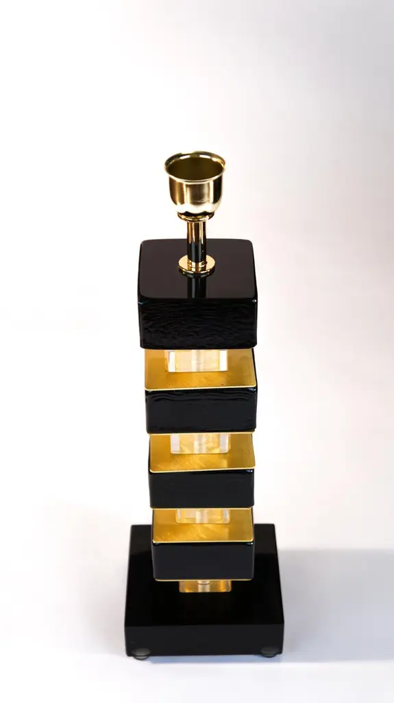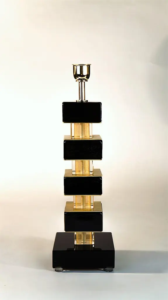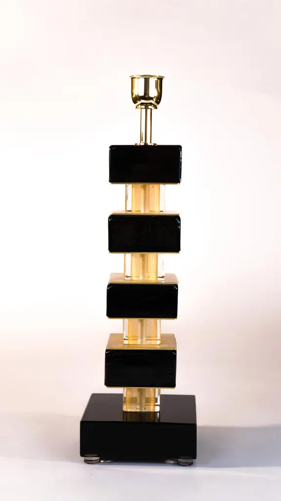 This is a very simple lamp, and because of its simplicity, it is certainly very elegant. Created by maestro Alberto Dona 'in 1980, it is embellished with 24-karat gold inserts that alternate with black blocks making the body of this lamp extremely refined.The products are entirely handmade in style Mid-Century Modern.Signature on the base by Alberto Donà Murano.The price of the item includes professional and tailored packing.Complexity is the hallmark of Murano glass lamps. The sheer beauty it radiates in any room in marvel-worthy.
