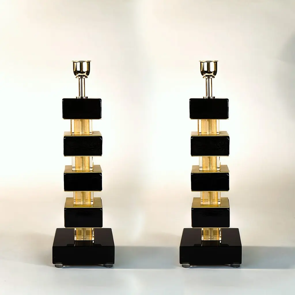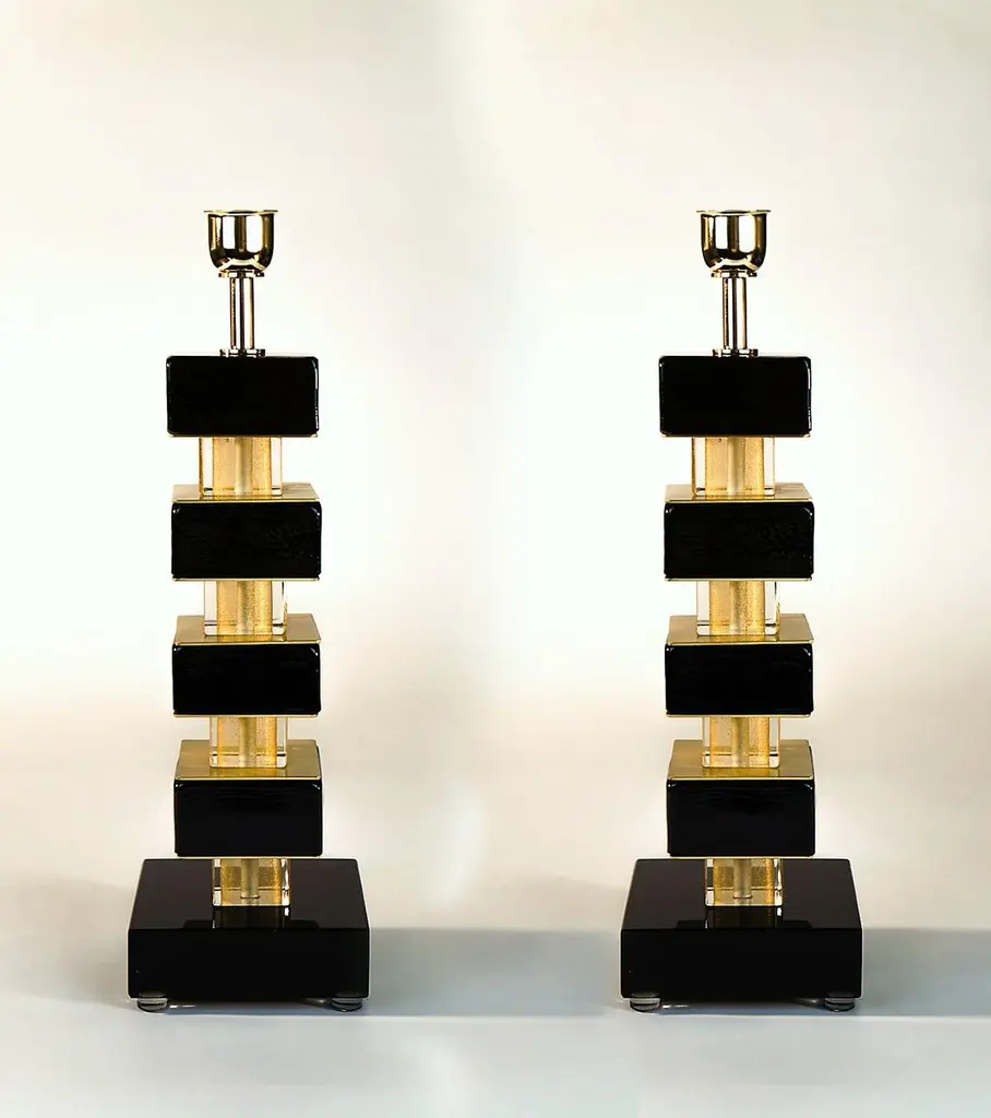 Alberto Donà Black Gold Pair Of Italian Murano Glass Table Lamps, 1980