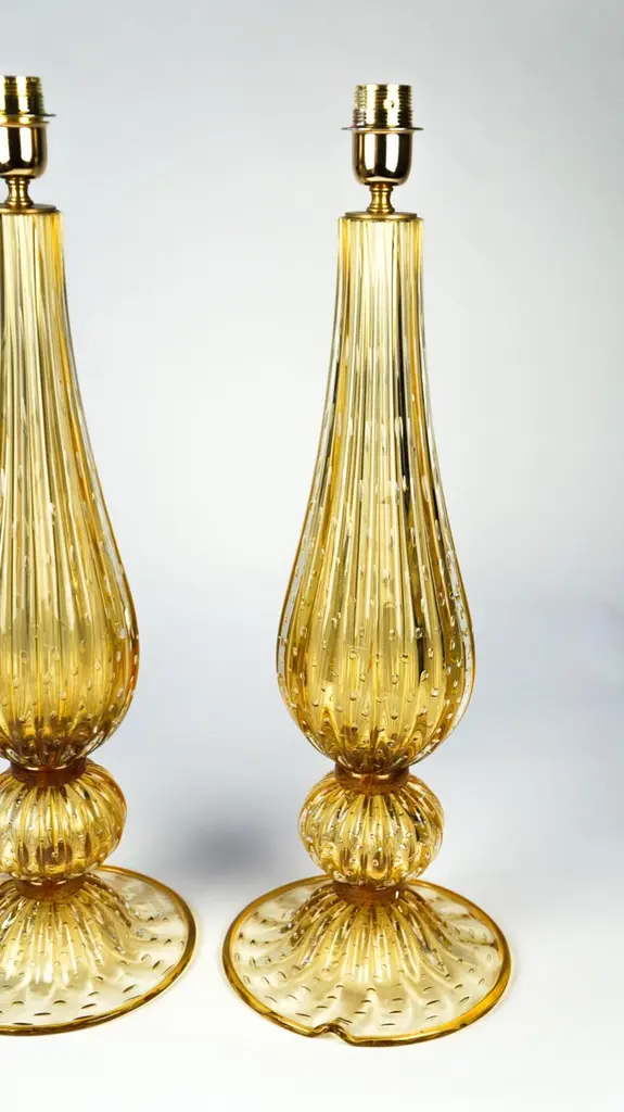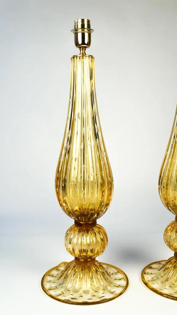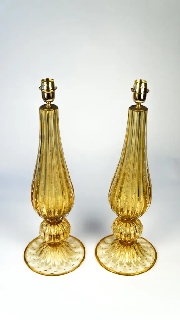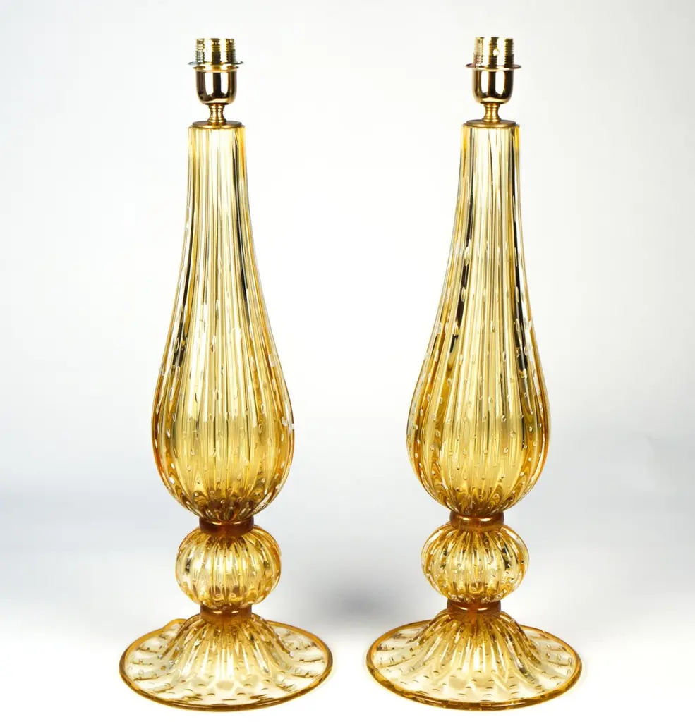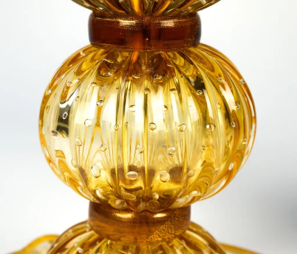 Alberto Donà Mid-Century Modern Amber Two Of Murano Glass Table Lamps, 1991