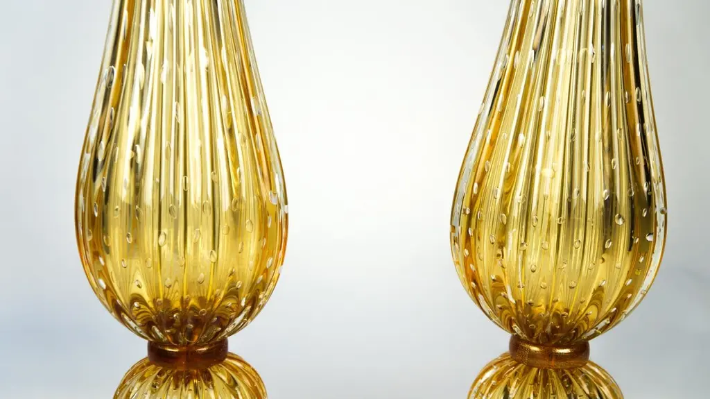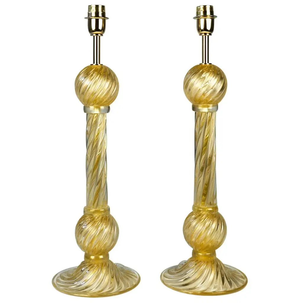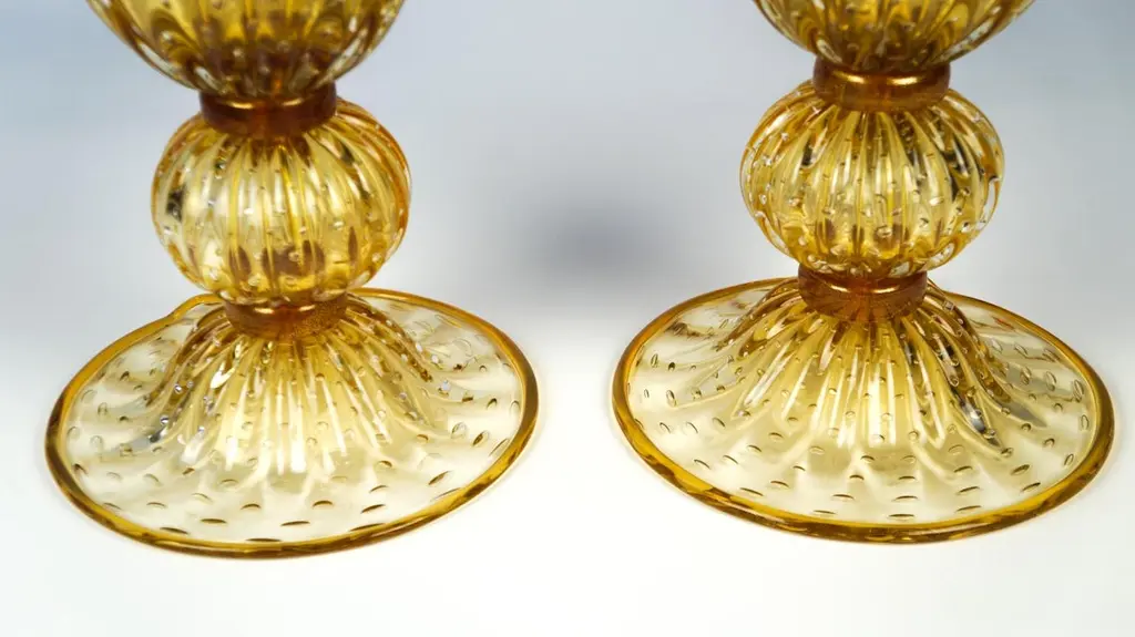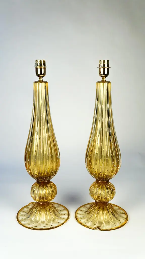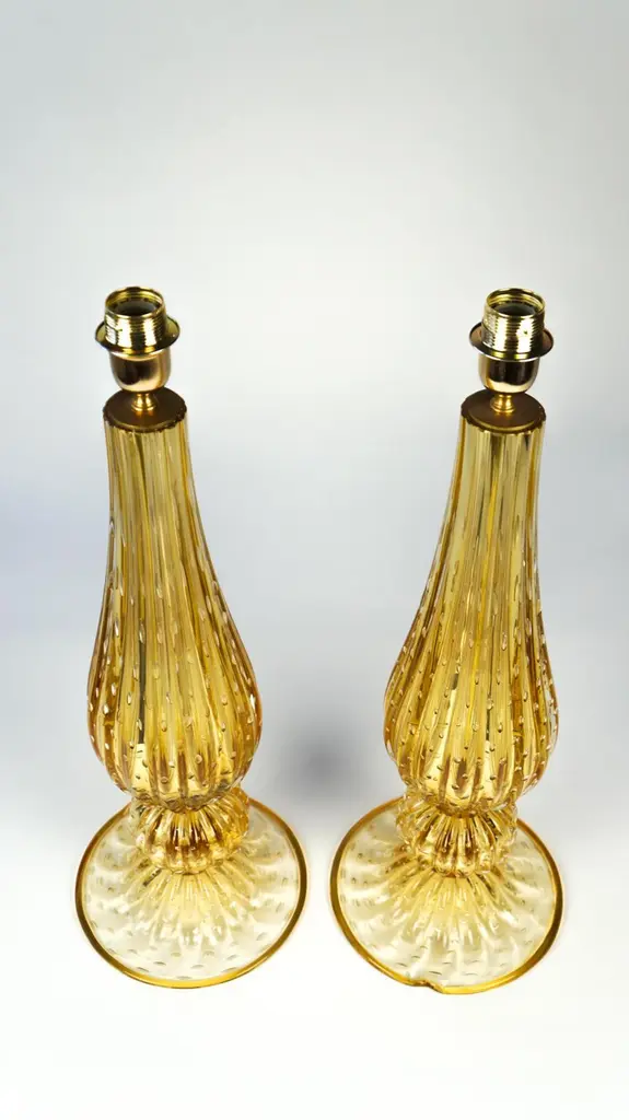 Alberto Donà Mid-Century Modern Amber Two Of Murano Glass Table Lamps, 1991