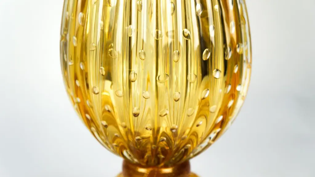 Designed in 1991, it is one of the most beautiful and Classic creations of maestro Alberto Donà. The lamp is composed of a Classic base, on which a sphere rests and on which rests the body of the lamp. Because of its shape, the lamp recalls a drop and, in fact, takes on this name. The lamp in the photo is beautiful with its amber color, which emphasizes the reflections of light, and once it comes in, the splendid bubbles inside the glass will be even more visible. It is an imposing lamp, which cannot be missed.Only considering the glass, the lamp is 59 cm high and has a diameter of 23 cm.Signed by: Alberto Donà MuranoThe products are entirely handmade in style Mid-Century ModernThe price of the item includes professional and tailored packing.Lamps can be rewired for your country code.