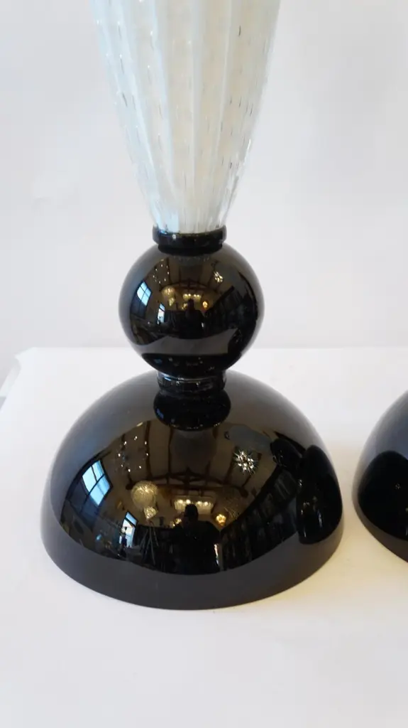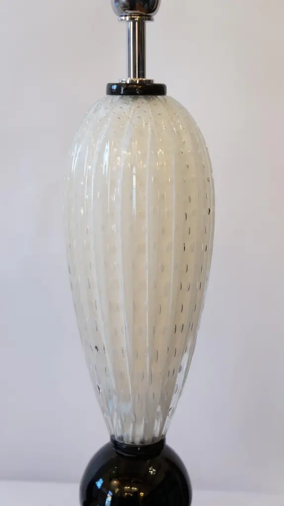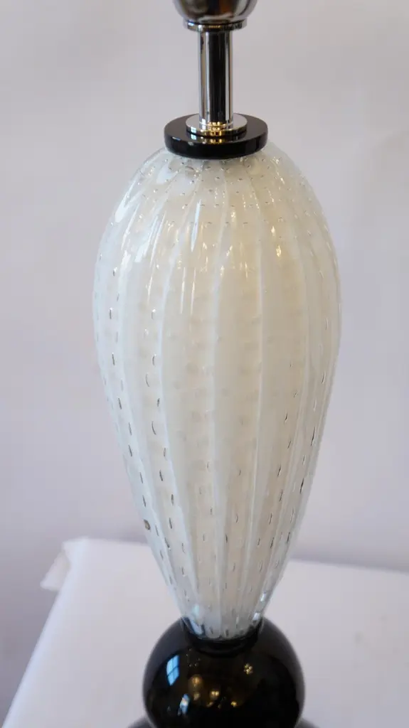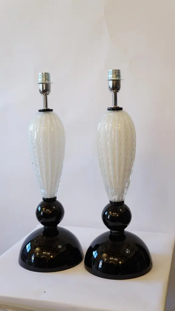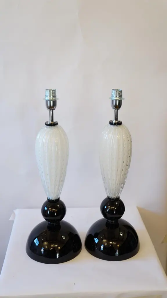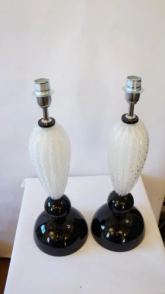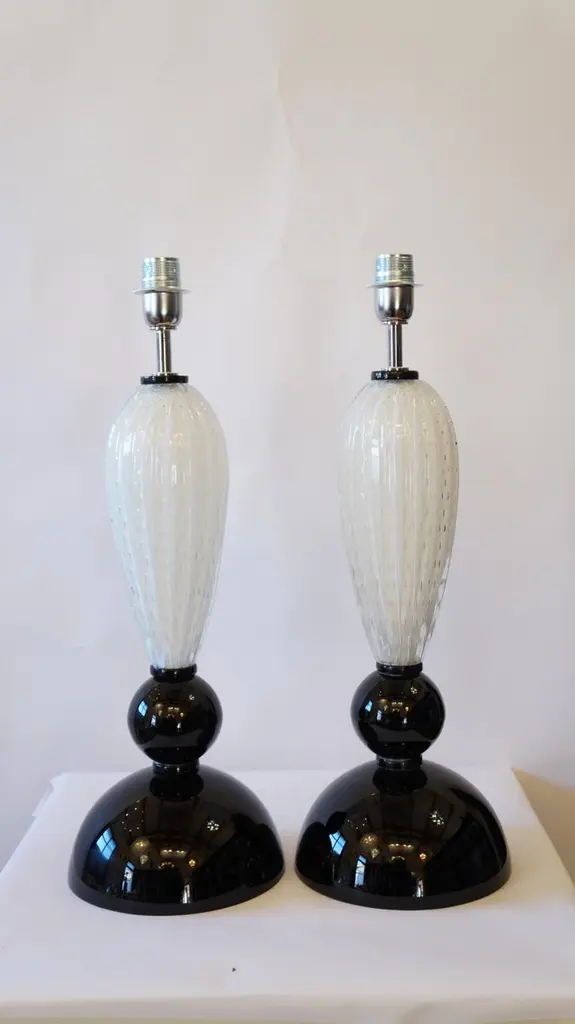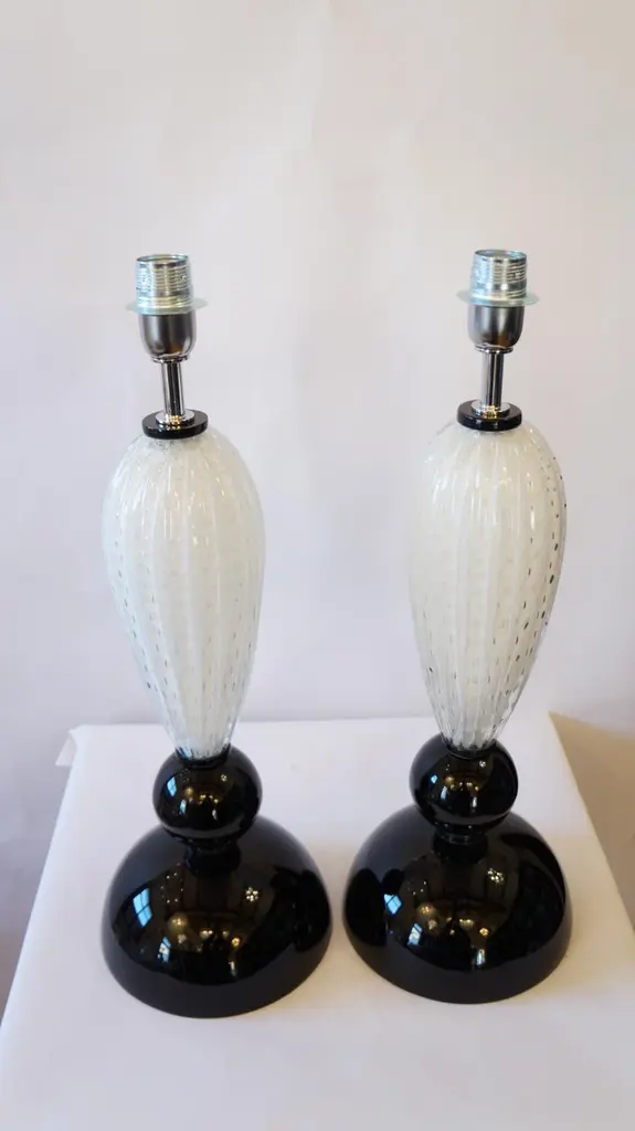Alberto Donà Mid-Century Modern Black White Two Murano Glass Table Lamps, 1995