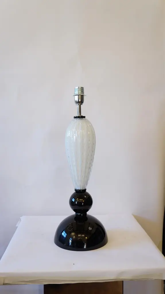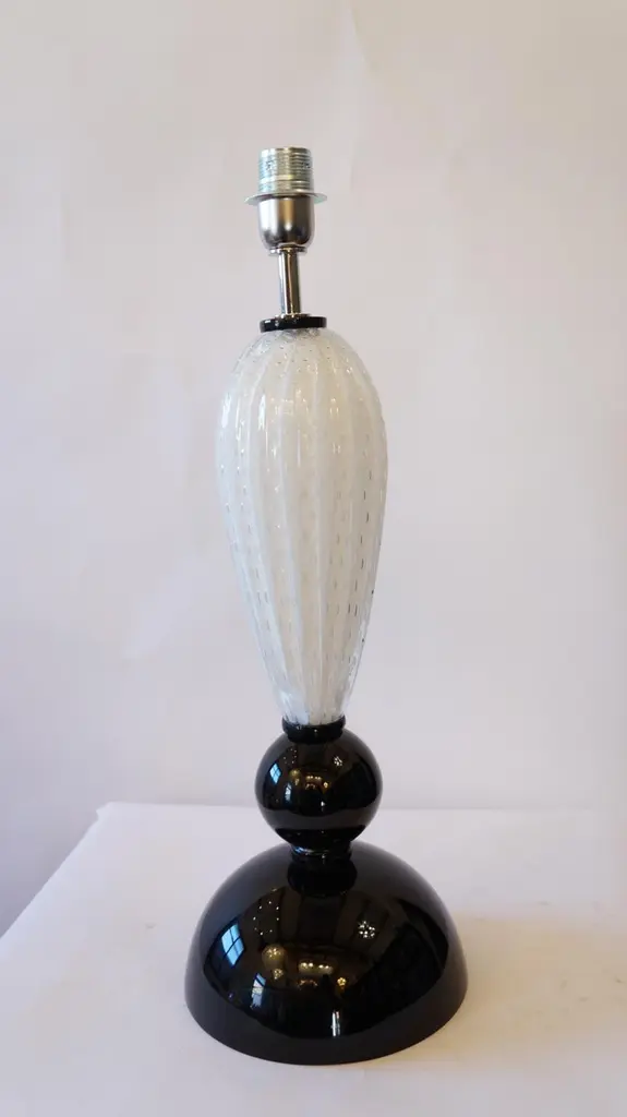 Designed in 1995 by Alberto Donà, the lamp in the photo is composed of three parts. It begins with a hemispherical base that lengthens the body of the lamp. It is followed by a small black sphere that enriches its simplicity and ends with the white element that detaches and lightens the black. This contrast between black and white is magnificent to observe, even more so when the lights are on.The products are entirely handmade in style Mid-Century ModernThe price of the item includes professional and tailored packing.Lamps can be rewired for your country code.