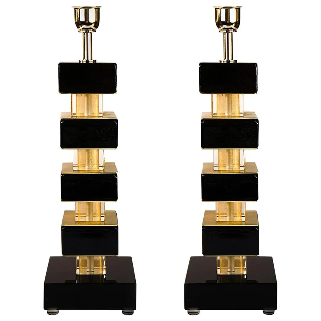 Alberto Donà Mid-Century Modern Blue Smoke Two Murano Glass Table Lamps, 1975