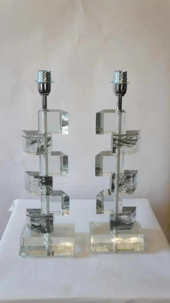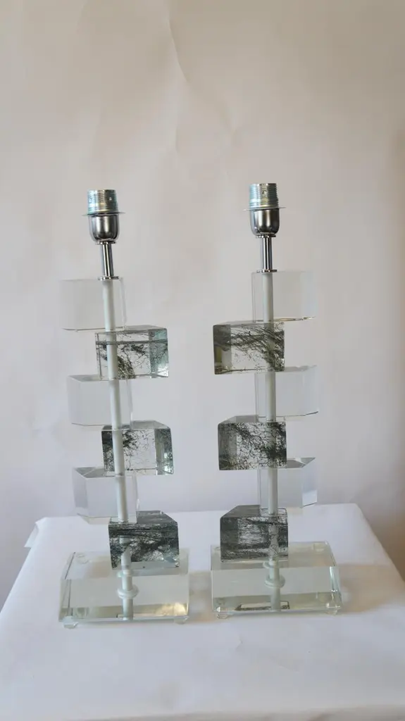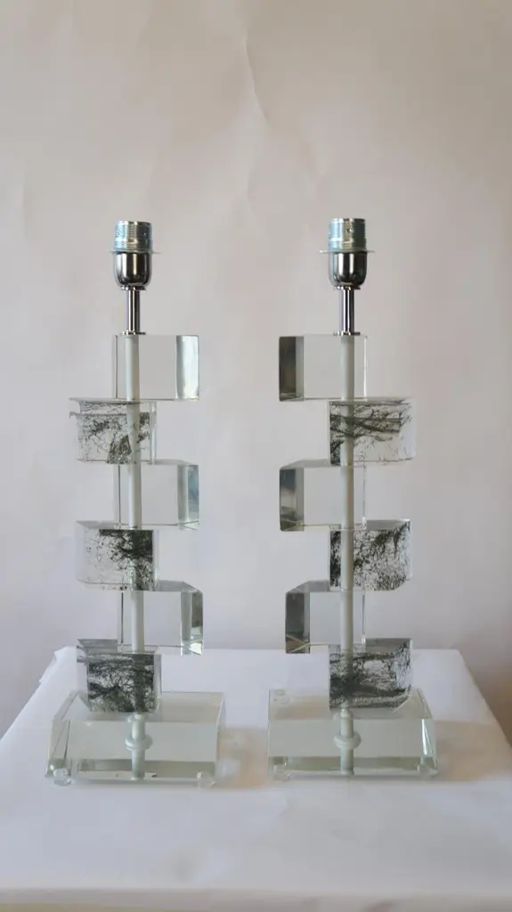 These table lamps, very special, rest on a crystal base, but definira exclusively crystal, is reductive. Do you see the streaks that this lamp has? The technique used to make it, makes you understand the magic that can be achieved in Murano. Do you know the sponges for washing dishes? Those are the ones inside the glass!They are pulled well, and then inserted into the glass, magnificent and unthinkable, NO??Lamps produced by the glass master Alberto Donà in 1980The products are entirely handmade in style Mid-Century ModernThe price of the item includes professional and tailored packing.Lamps can be rewired for your country code.