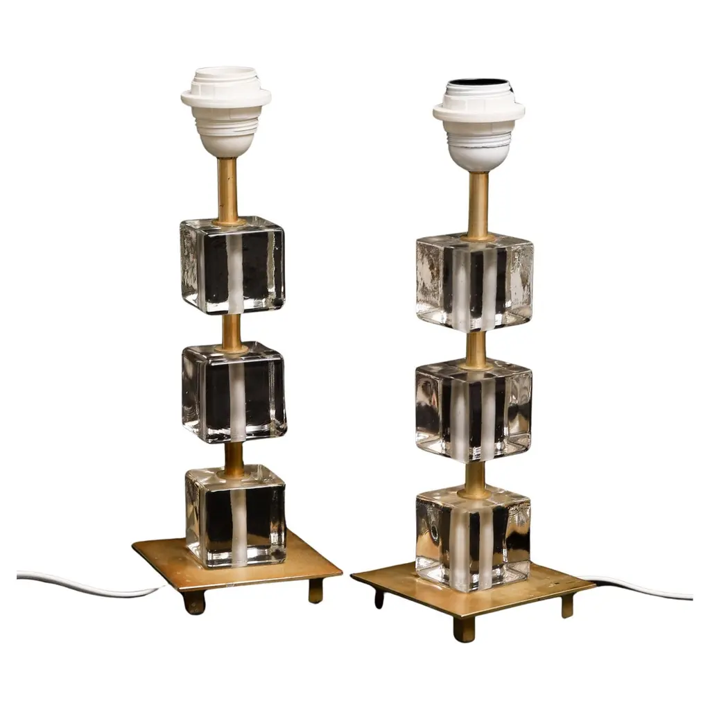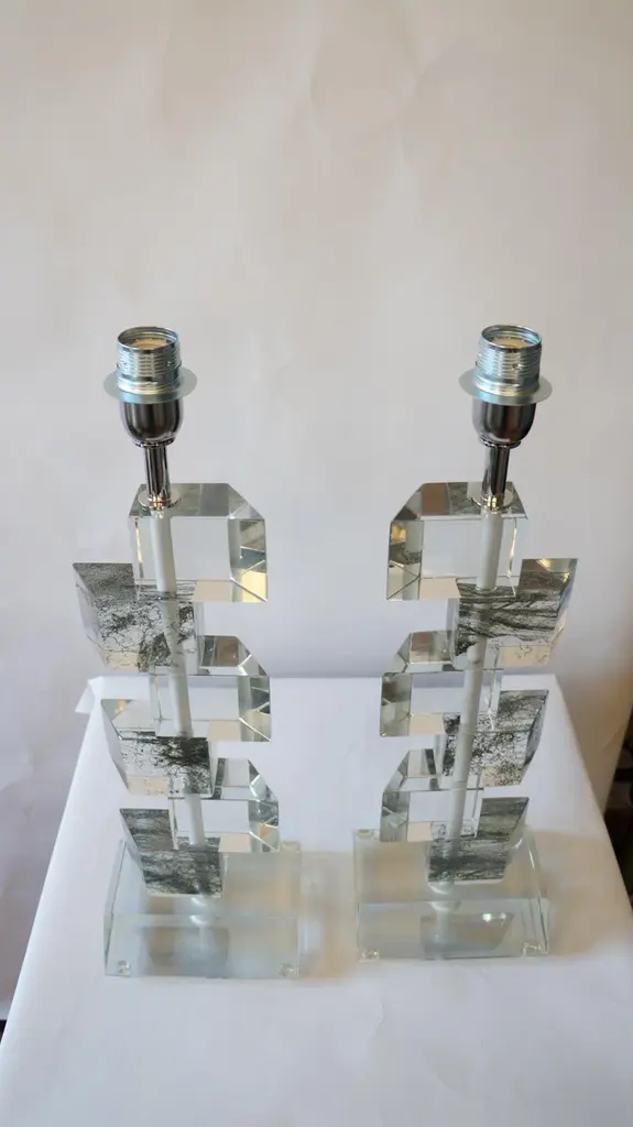 Alberto Donà Mid-Century Modern Crystal Two Murano Glass Table Lamps, 1980
