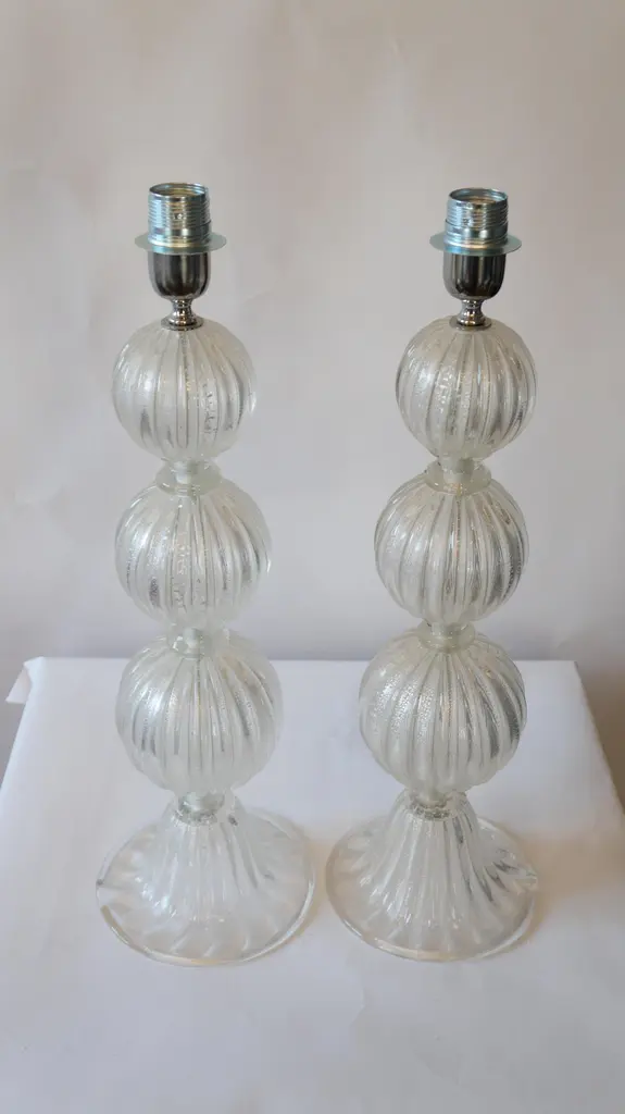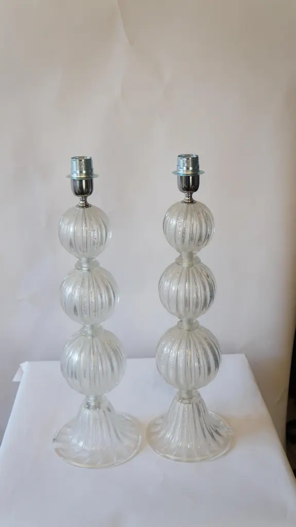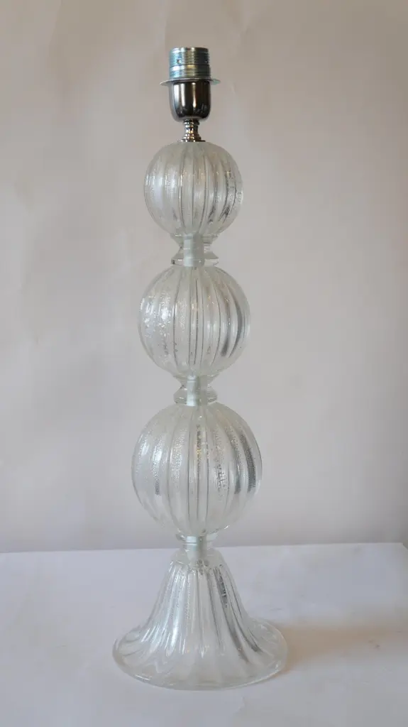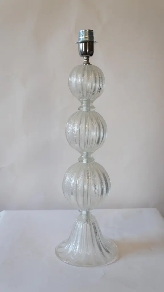 With this lamp, we present a product that with its elegance, never dies and never gets tired. In the end, as Yves Saint Lauren said, "fashions pass but style is eternal", right? Formed by the sequence of three spheres, this lamp conquers us with its simplicity of crystal adorned with silver leaf. Designed by Alberto Donà in 1990, you will never get tired of having it. Imagine it above the bedside tables of your bedroom, it would make any room look fine.The products are entirely handmade in style Mid-Century ModernThe price of the item includes professional and tailored packing.Lamps can be rewired for your country code.