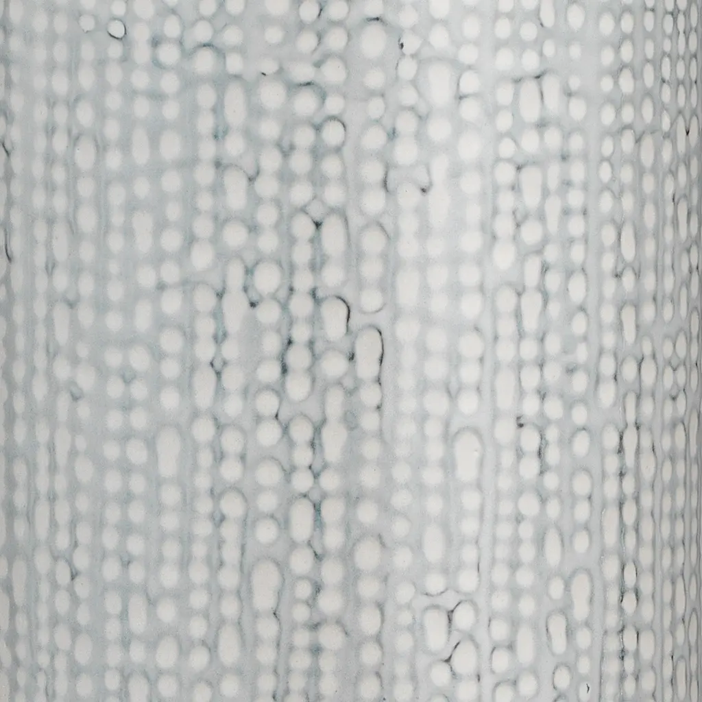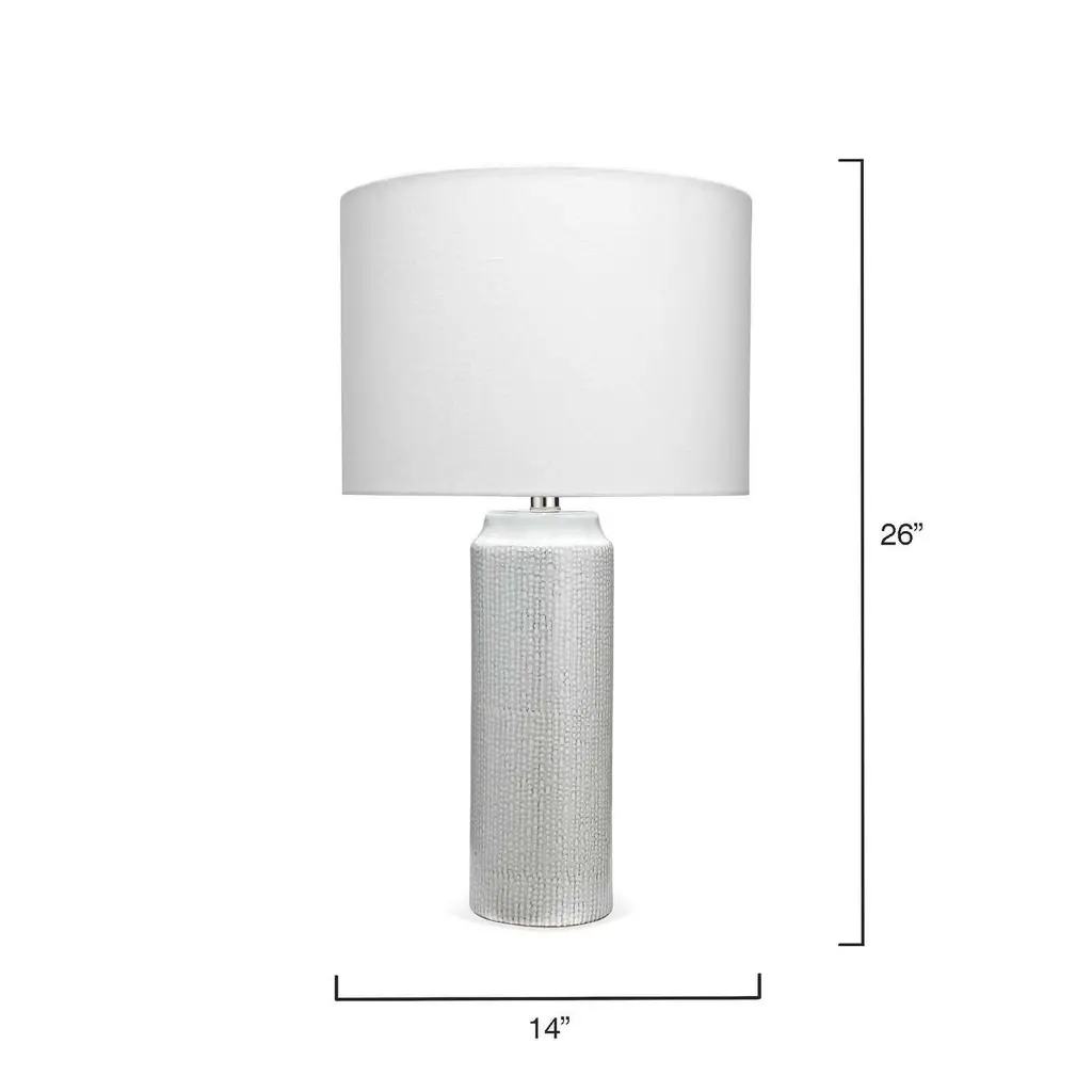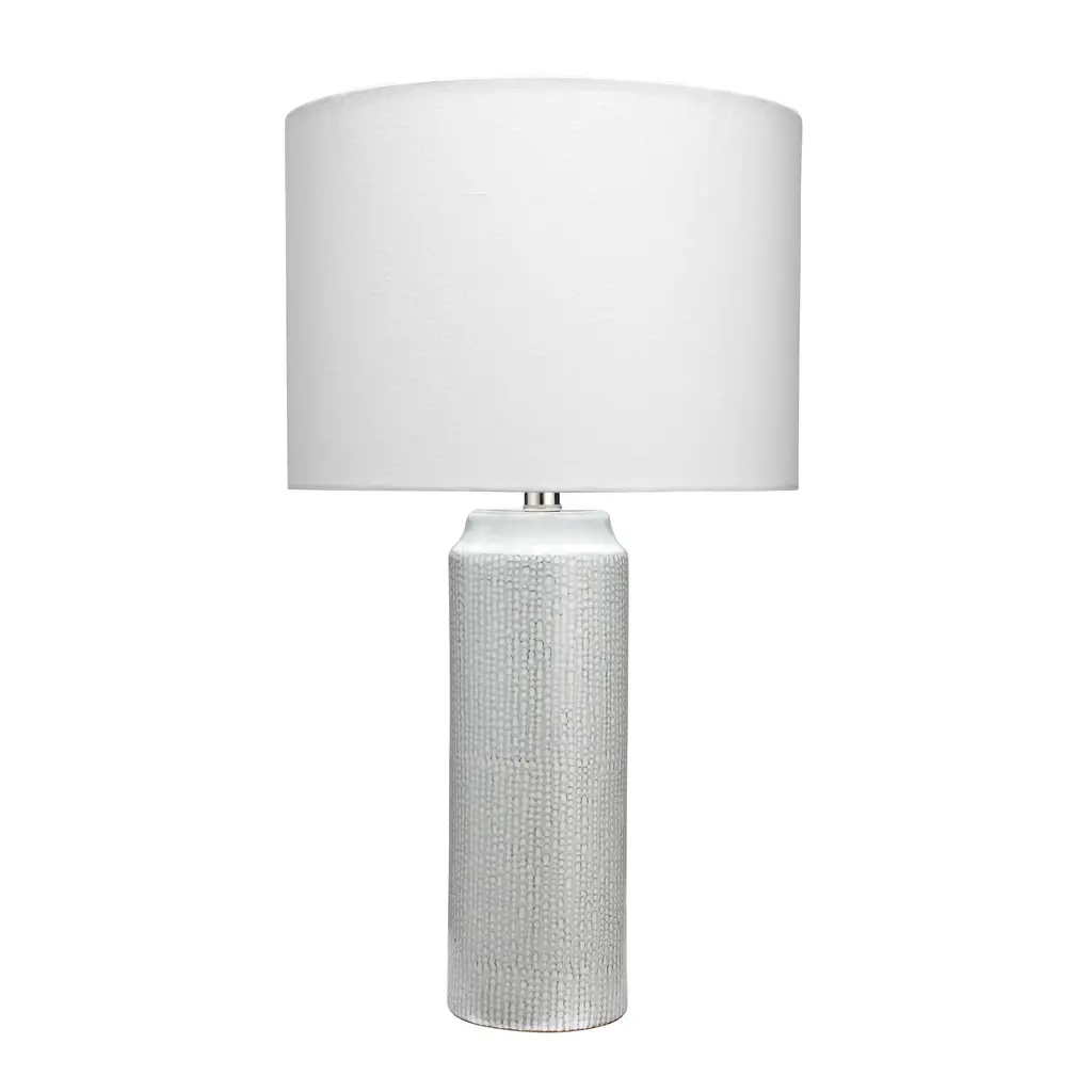 A simple, unrefined shape lends this table lamp organic beauty. Crafted of ceramic, this lamp features a subtle blue and white dot pattern in reactive glaze. Topped with a linen shade for a soft contrast and refined glow. •Handmade of ceramic•100% Linen White Drum Shade•Dot Pattern Base•Silver Ball Finial•Reactive Glaze makes each piece distinct from the nextThe handcrafted nature of ceramic creates products with character and individuality. The inherent variations in tone or texture, are preserved, to create pieces rich in detail and natural beauty. These unique imperfections and variations are what define our products, with each piece having its own personality. •Lamp Dimensions: 16"H x 5.5" Diameter Footprint• Shade Dimensions: 10"H x 14"W x 14"D• 1 bulb required; Bulb Not Included• 100 Max Wattage; 120 Volts• E26 Bulb Base Type • 8 Ft Clear Cord• 3-way Switch We do not recommend using harsh or abrasive cleaners at any time as they can damage product. Wipe surfaces gently with soft, dry cloth. If needed, you may use a lightly damp cloth with water only on base.