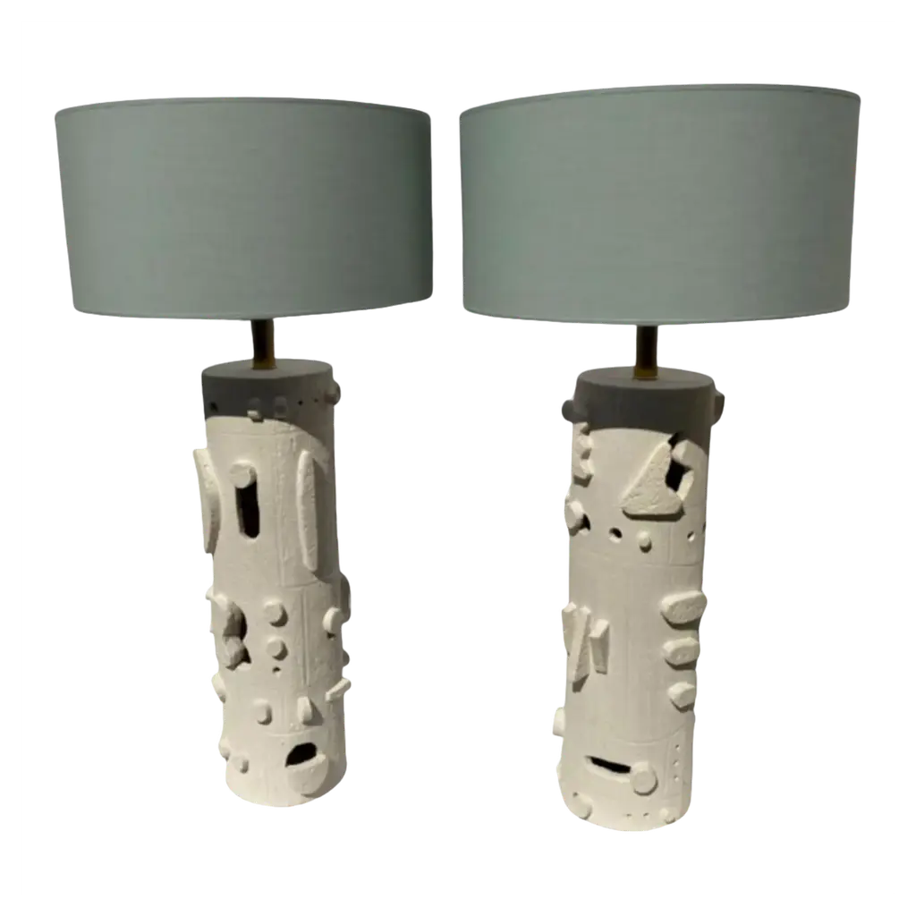 Aldo Londi Table Lamps Ceramic By Bitossi Italy 1960 Signed