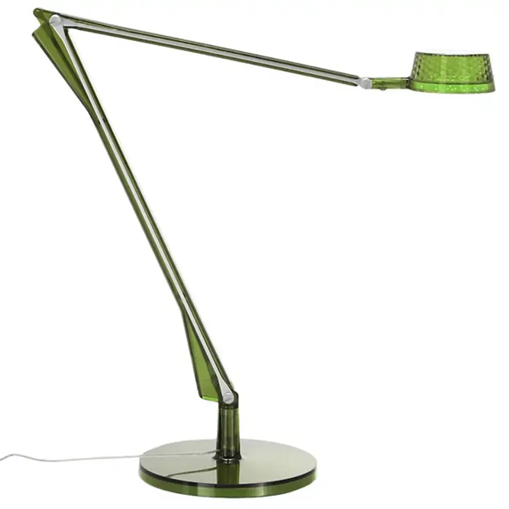 Designers Alberto and Francesco Meda combine simplicity with superior functionality in the Aledin Dec LED Table Lamp by Kartell. The lamp’s cone-shaped diffuser provides a wide, atmospheric light that works great for residential settings, and two polycarbonate arms allow for flexible positioning of the diffuser to direct the light wherever is needed. Very environmentally friendly due to its use of modern LED bulbs, the lamp is both a stylish and sensible choice.