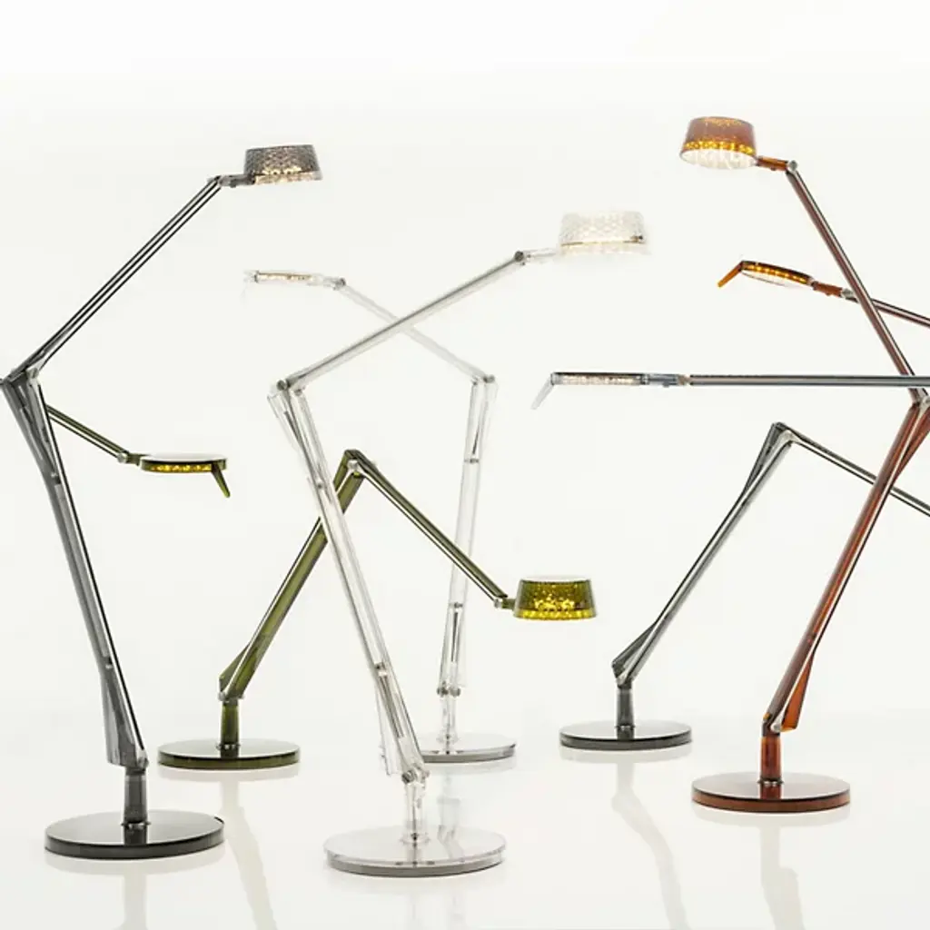 Designers Alberto and Francesco Meda combine simplicity with superior functionality in the Aledin Dec LED Table Lamp by Kartell. The lamp’s cone-shaped diffuser provides a wide, atmospheric light that works great for residential settings, and two polycarbonate arms allow for flexible positioning of the diffuser to direct the light wherever is needed. Very environmentally friendly due to its use of modern LED bulbs, the lamp is both a stylish and sensible choice.