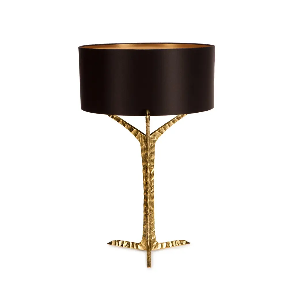 Alentejo table lamp is a glimpse over the South of Portugal where thousands of cork oaks trees raise their canopies to the sky.Resembling the typical trees that spread across the horizon with their canopies gracefully balanced above the ground, this nature inspired design is based in the beautiful natural forms. The structure in cast brass with patinated effect results of a careful sculpted work that highlights the natural details.This modern table lamp is one of the most successful pieces from InsidherLand luxury lighting collection.Product details:Lampshade: InsidherLand satin ref. Pearl and black with gold.Base: Feet in cast brass with patinated effect finished in matte varnish.Product options:Top: InsidherLand lampshade fabrics or client fabric.Base: Under request.Weight:2Kg 4.5 lbs Electrical characteristics:Mains: 3 wires connection - Live ; Neutral ; EarthFrequency: 50-60HzLamp: E27; 60W max.USAVoltage: 110-130VACEuropeVoltage: 220-240VACMade to order. Other finishes are available under request. Designed by Joana Santos Barbosa, 2016. Handmade in Portugal.