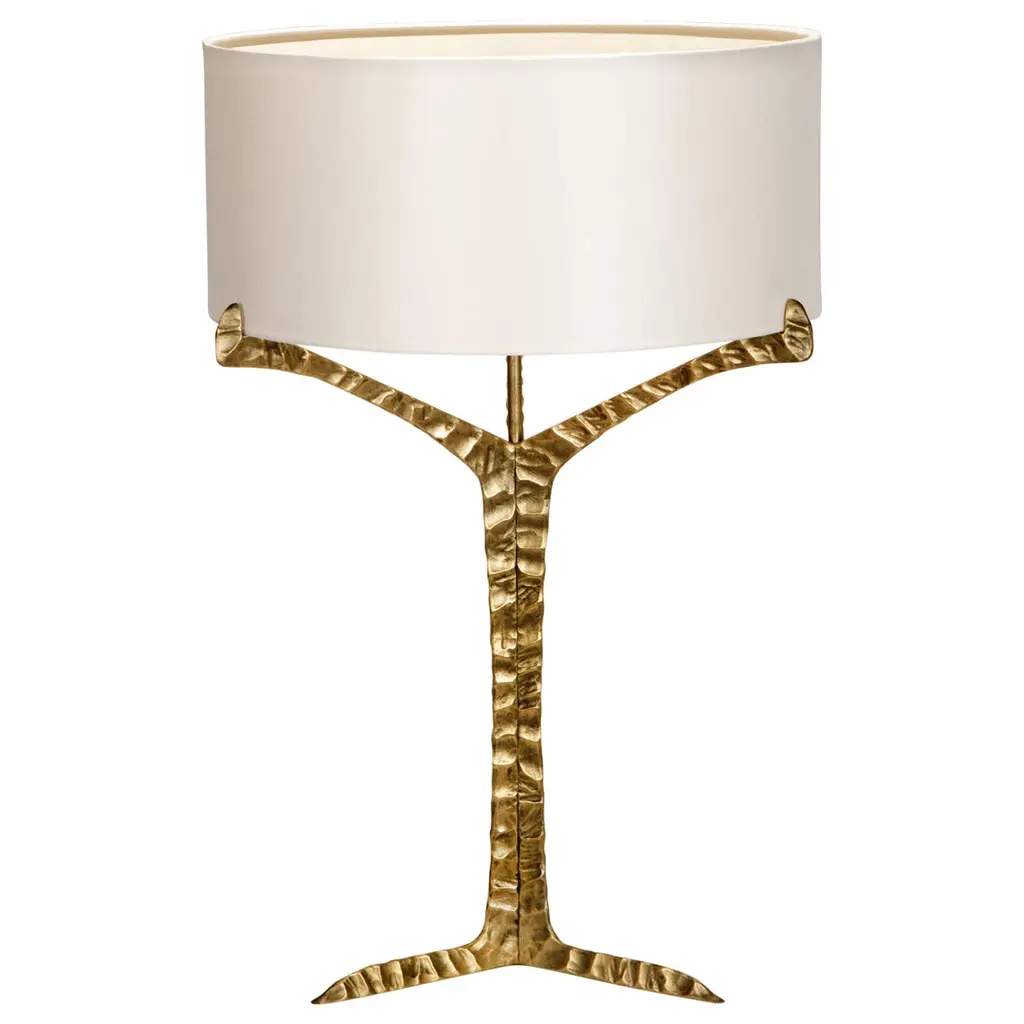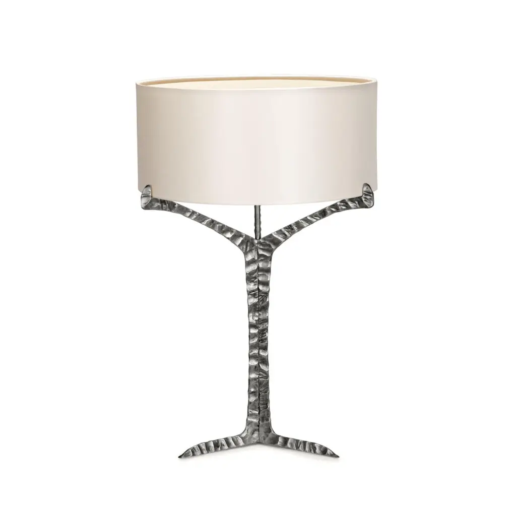 Alentejo table lamp is a glimpse over the South of Portugal where thousands of cork oaks trees raise their canopies to the sky.Resembling the typical trees that spread across the horizon with their canopies gracefully balanced above the ground, this nature inspired design is based in the beautiful natural forms. The structure in cast brass with nickel bath and patinated effect results of a careful sculpted work that highlights the natural details.This modern table lamp is one of the most successful pieces from InsidherLand luxury lighting collection.Product details:Lampshade: InsidherLand satin ref. Pearl and black with gold.Base: Feet in cast brass with nickel bath and patinated effect finished in matte varnish.Product options:Top: InsidherLand lampshade fabrics or client fabric.Base: Under request.Weight:2Kg 4.5 lbs Electrical characteristics:Mains: 3 wires connection - Live ; Neutral ; EarthFrequency: 50-60HzLamp: E27; 60W max.USAVoltage: 110-130VACEuropeVoltage: 220-240VACMade to order. Other finishes are available under request. Designed by Joana Santos Barbosa, 2016. Handmade in Portugal.
