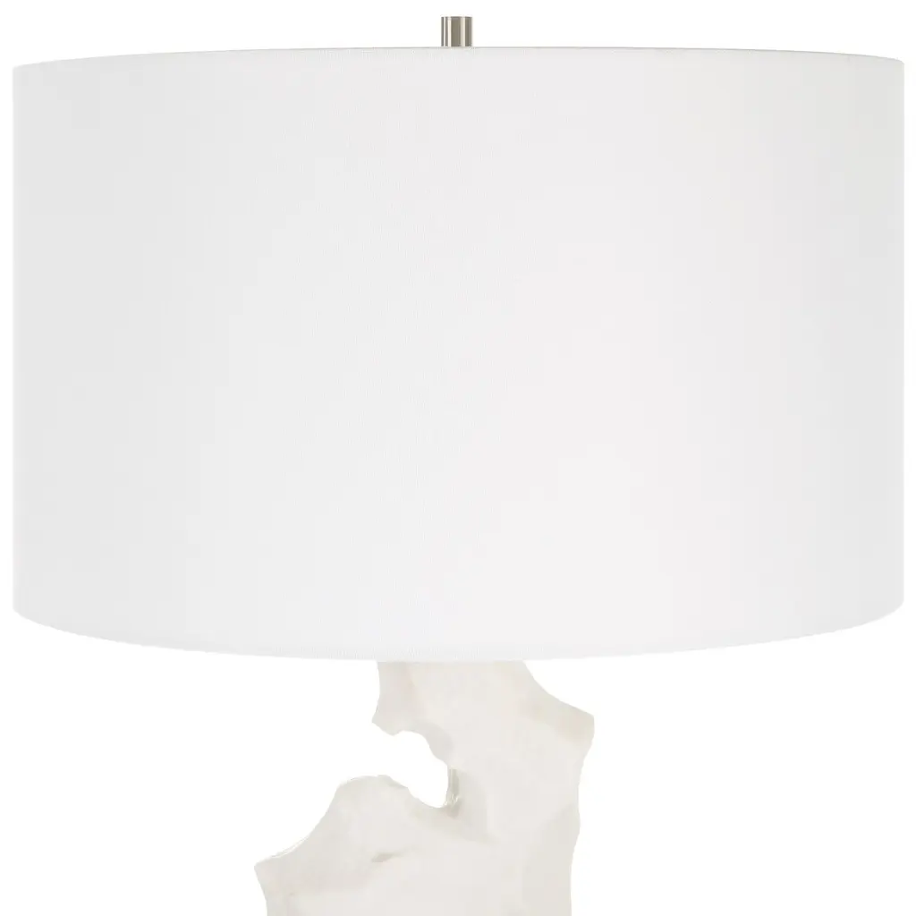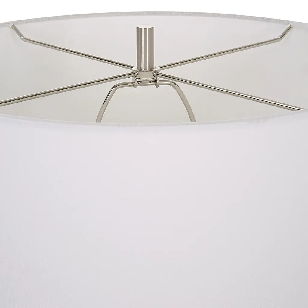 The Alessandra Table Lamp is a stunning fusion of functionality and artistry. Crafted from man-made stone that beautifully mimics the elegance of Thassos marble, this lamp serves as both a source of light and a modern sculpture. Its design is enhanced with sleek brushed nickel plated accents, adding a touch of sophistication. Topped with a hardback drum shade in crisp white linen, it offers a timeless appeal that complements any decor. elevate your space with this exquisite piece that embodies both style and utility.