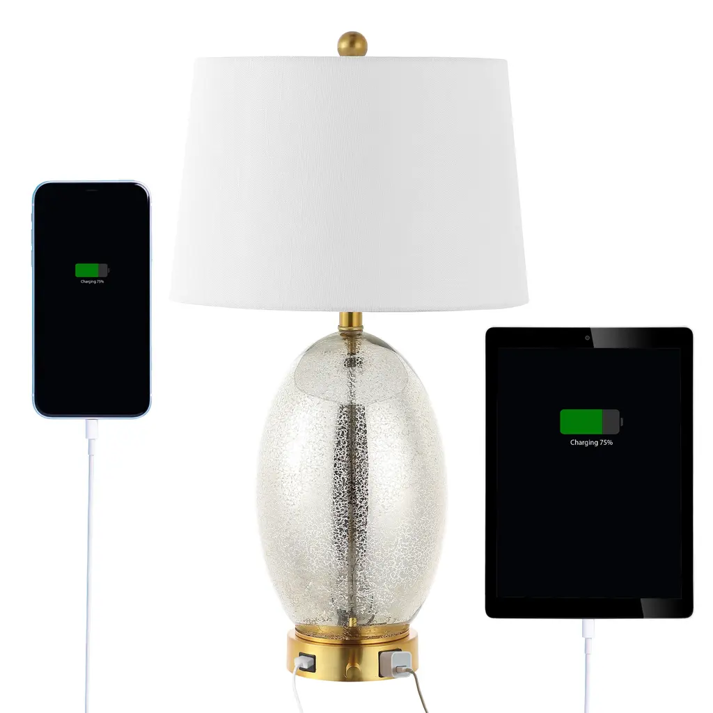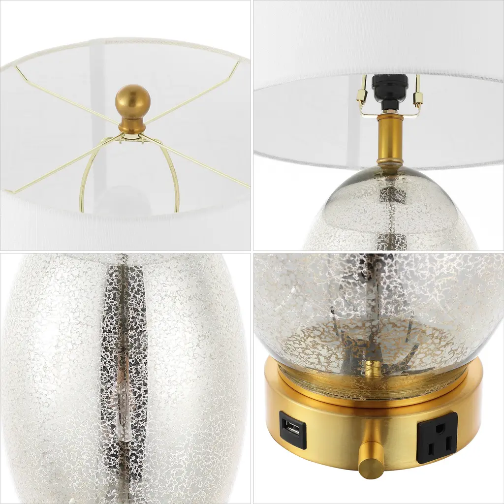Alexander 26.5" 1-Outlet Contemporary Style Iron/glass Led Table Lamp With Usb Charging Port, By Jonathan Y - Silver/brass Gold