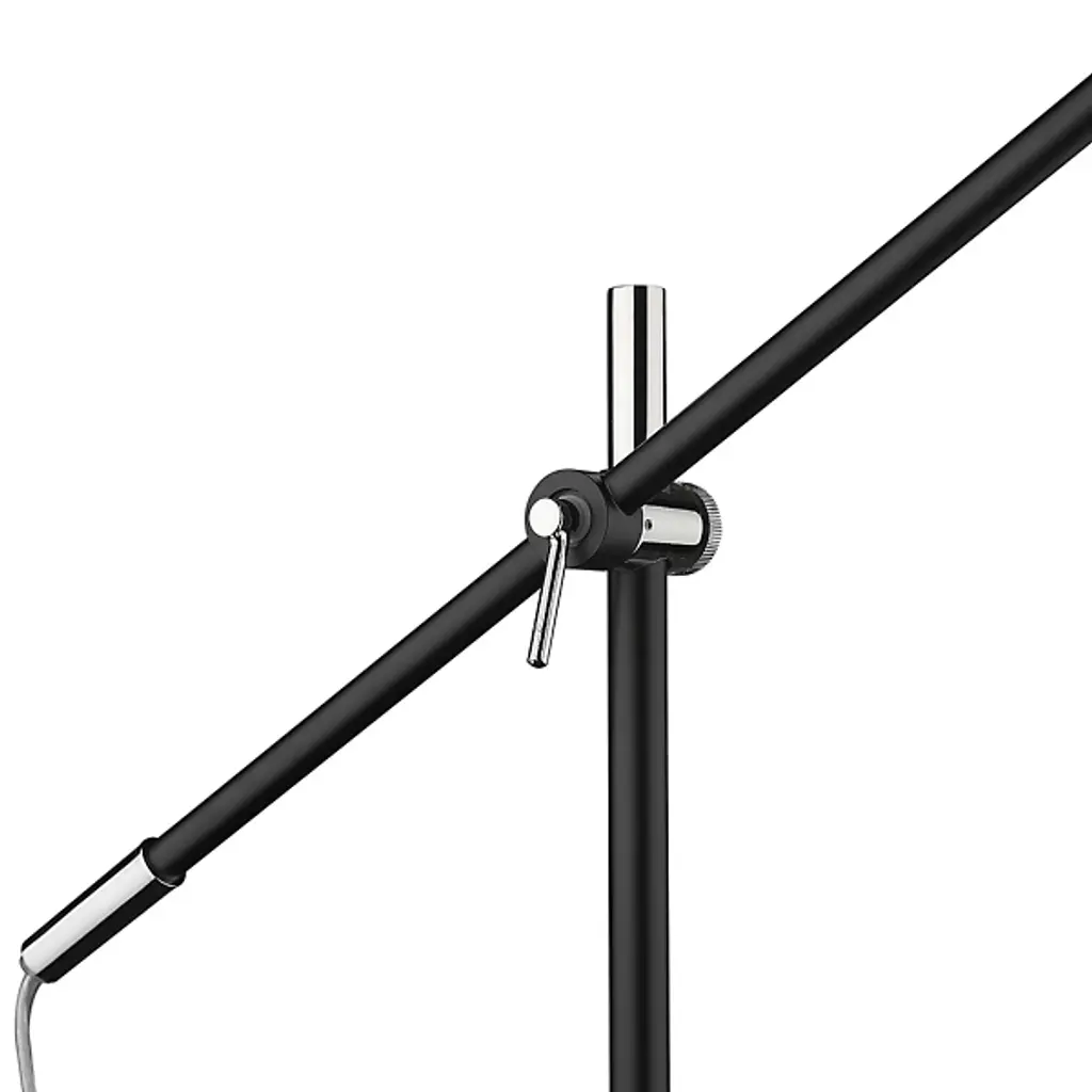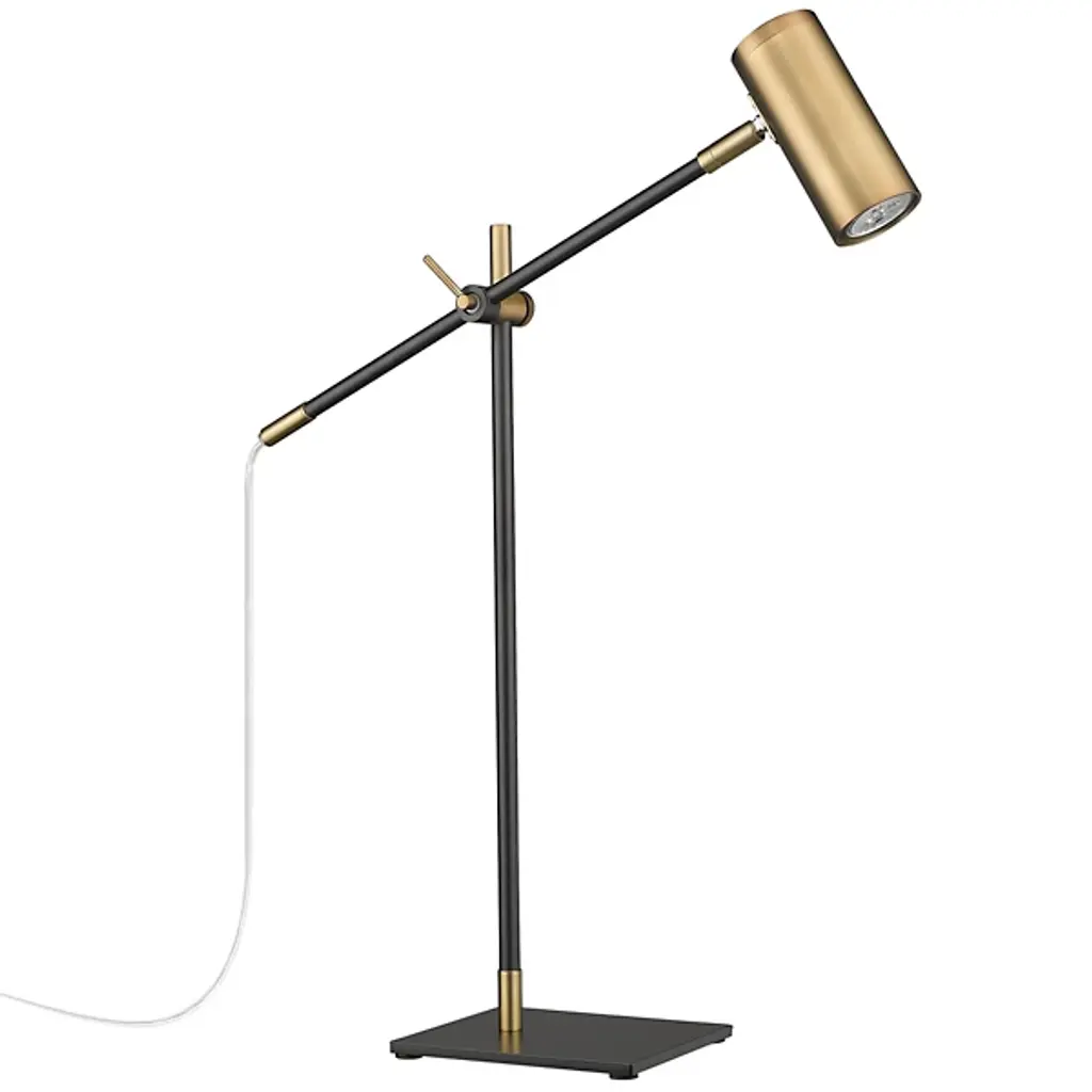 The Allen Table Lamp from Alder & Ore is a portable table lamp that boasts a robust metal baseplate with a sleek rectangular shape, offering a sturdy foundation. A vertically aligned rod extends from this base, creating an elegant and streamlined silhouette. At the top, a second rod intersects perpendicularly, holding a cylindrical steel encasement housing an LED light source. This lamp’s beauty lies in its adjustability, allowing you to precisely direct the light where you need it.