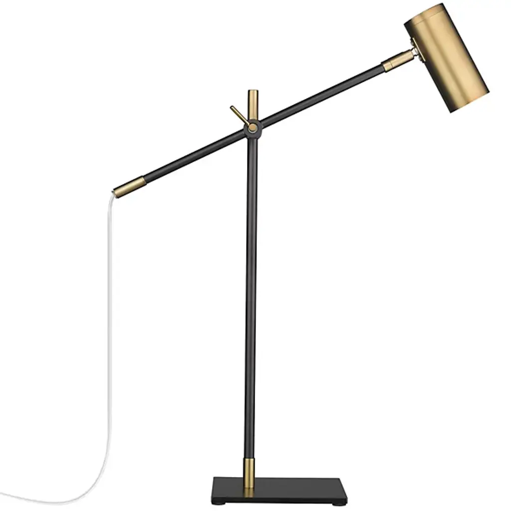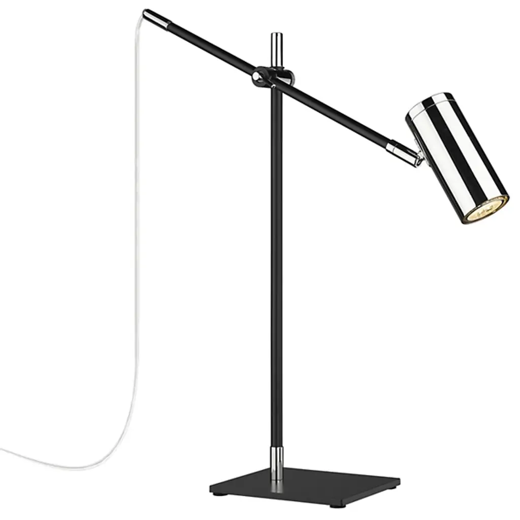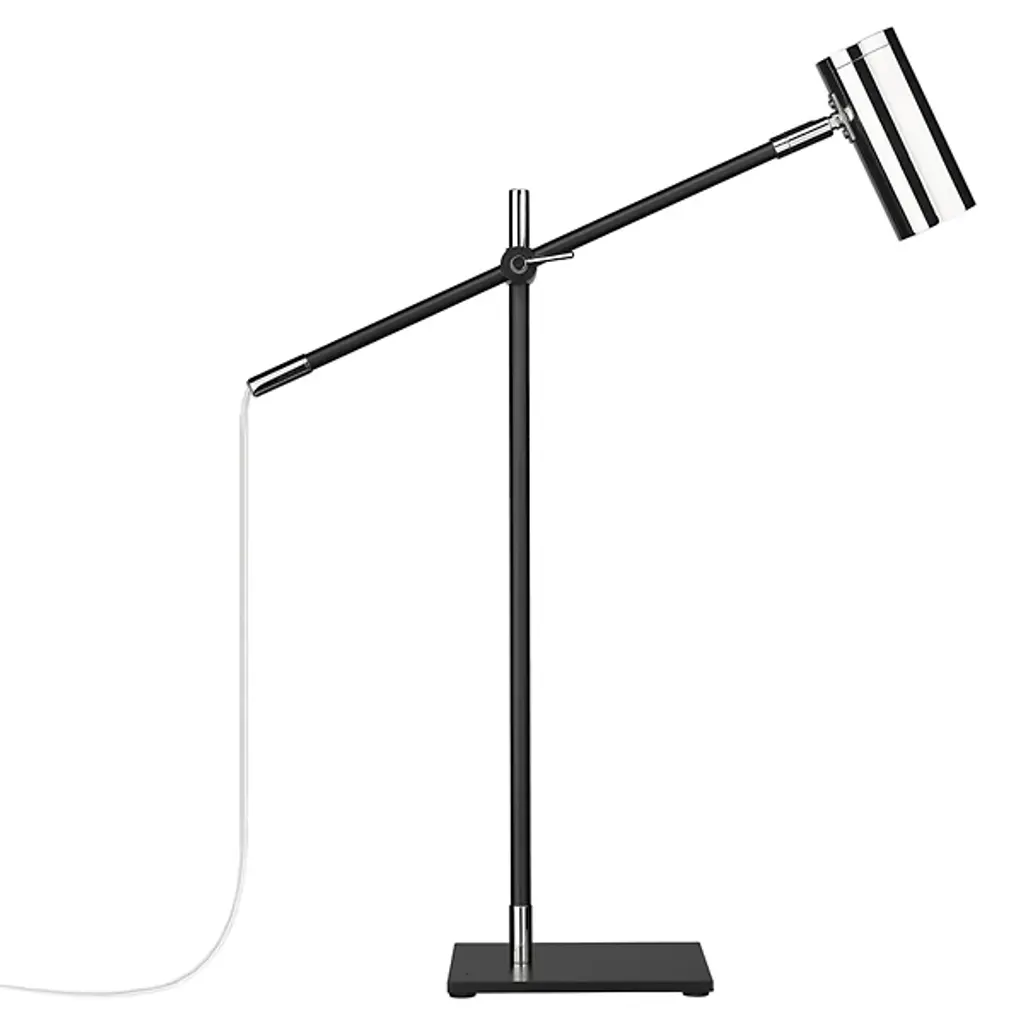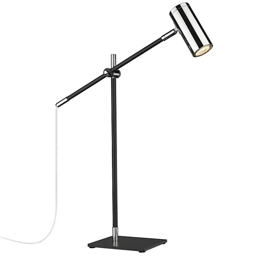The Allen Table Lamp from Alder & Ore is a portable table lamp that boasts a robust metal baseplate with a sleek rectangular shape, offering a sturdy foundation. A vertically aligned rod extends from this base, creating an elegant and streamlined silhouette. At the top, a second rod intersects perpendicularly, holding a cylindrical steel encasement housing an LED light source. This lamp’s beauty lies in its adjustability, allowing you to precisely direct the light where you need it.