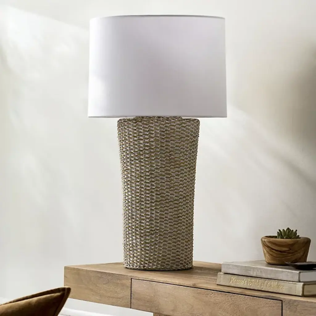 The Allura Table Lamp from Surya features handwoven rattan for its base, bringing natural warmth and texture into any room. Topped with a drum-shaped linen shade, this lamp produces a gentle, diffused light that feels welcoming and makes spaces more inviting. Its 3-way socket offers flexibility for different lighting needs throughout the day. This table lamp fits beautifully in traditional spaces but also adds organic texture to more contemporary rooms, particularly effective on side tables, entryway consoles, or desk surfaces where its natural elements can be appreciated.
