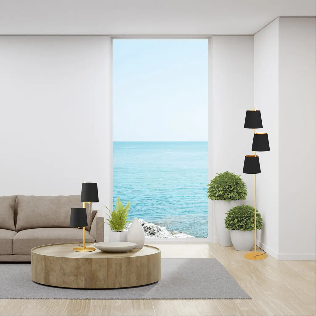 Almeida 2 - 2 Light Table Lamp - Brushed Brass Finish - Black Exterior & Gold Interior Shades