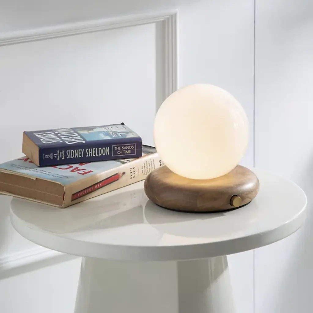 The Almeta LED Table Lamp from Alder & Ore redefines portable lighting for the modern age. Its spherical shade, perched atop a natural oak base, evokes images of a celestial body hovering just within reach. The built-in LED and USB-C charging capability makes it perfect for indoor and outdoor use. Whether it's illuminating a cozy reading nook or adding ambiance to a patio dinner, this desk lamp adapts effortlessly. The antique brass dimmer switch allows for customized lighting moods, from a soft glow to bright task lighting.