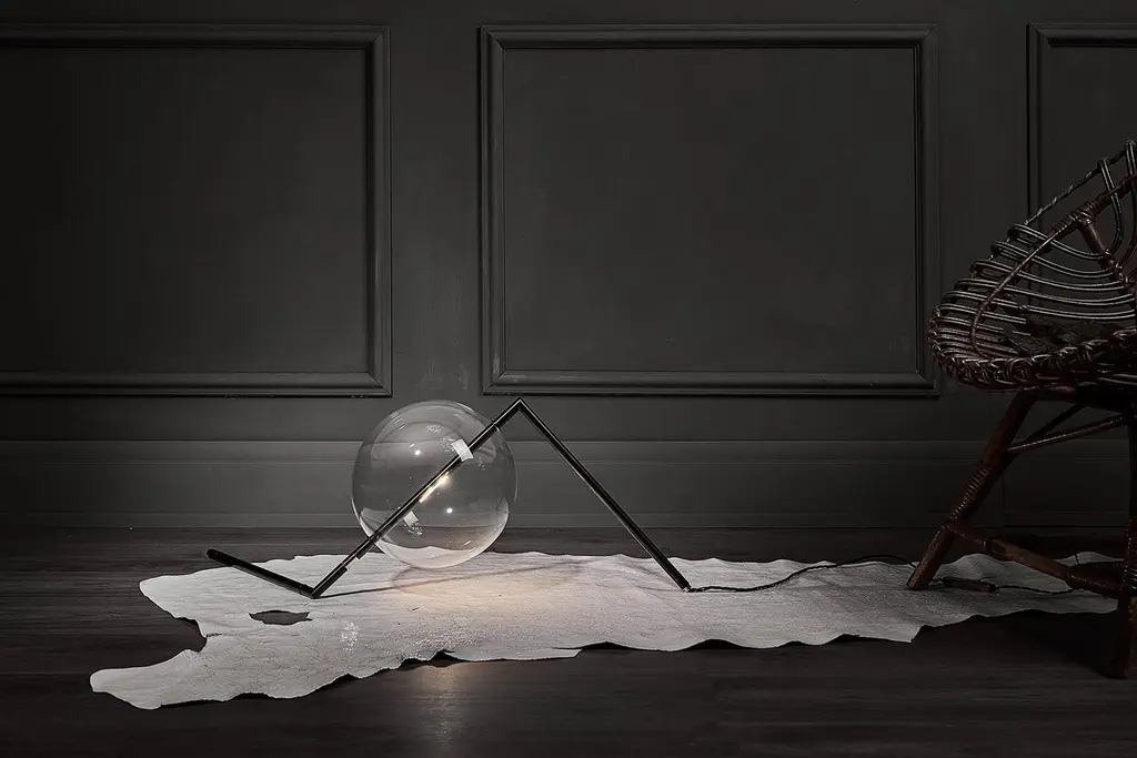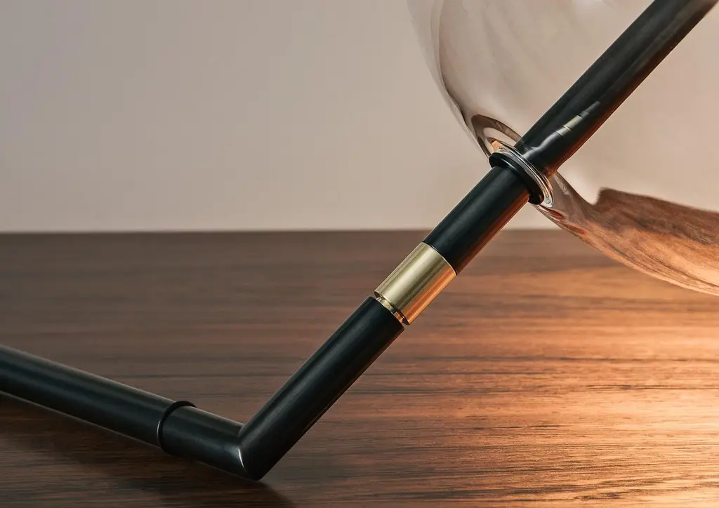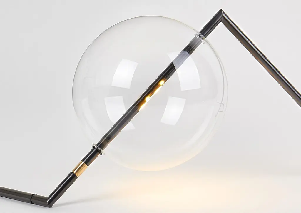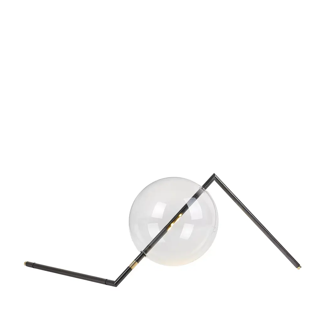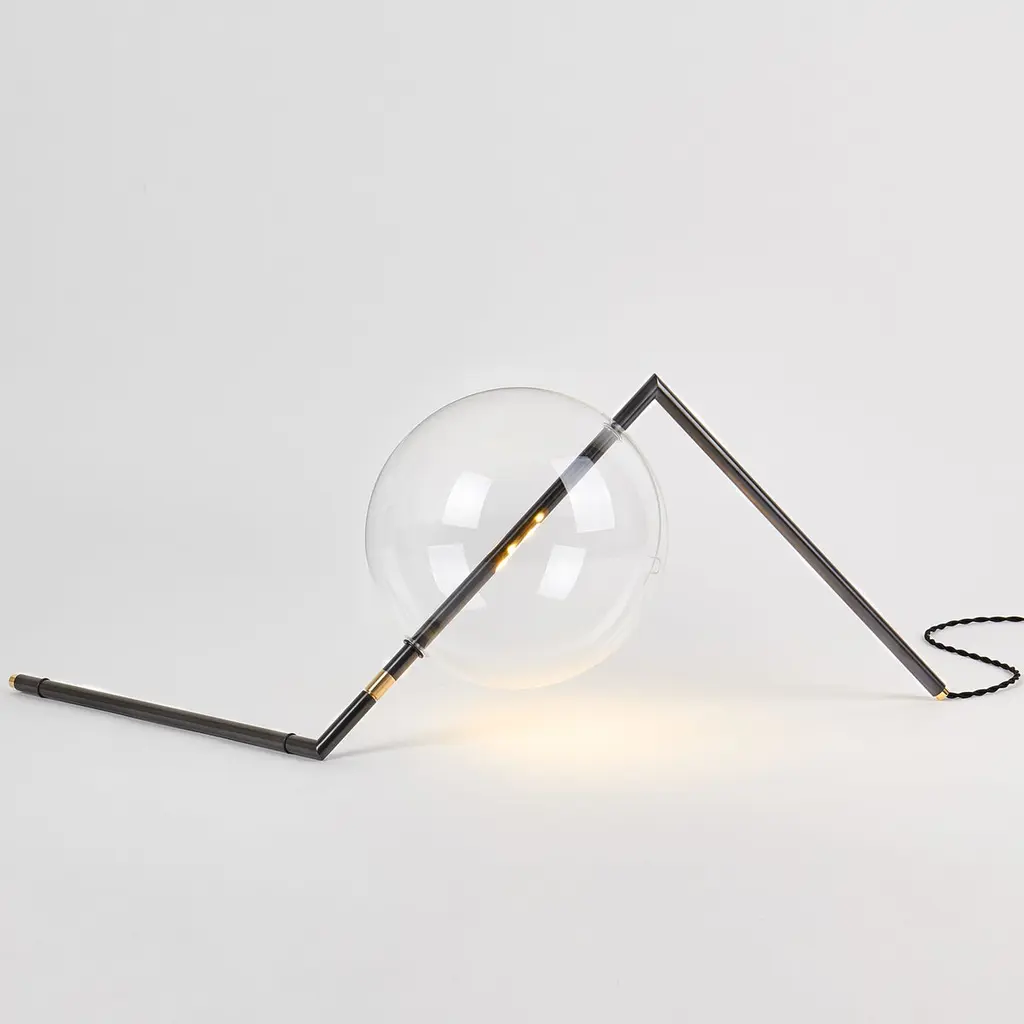 Designed to be positioned on the floor or on a console, the Alpi Floor/Table Lamp is a work of Abstract Art for the home. The exact arrangement of this Sculptural Decorative Piece can be adjusted using the nickel ring, and with the “inline Touch Dimmer” the brightness can be adjusted as needed. The Touch Dimmer is available as optional.Dimensions: H 11”• W 29”• D 12” H 28cm• W 74cm• D 30cm glass globe: ø 9.4” ø 24cmWeight: 3.3lb • 1.5kgLed light type: proprietary 24vcc led • One 6w • 2700k supply: plug-in power supply 100-240v 50/60hz light control: inline on-off switchmaterials: machined brass, hand-blown glass, aluminumlead time appx. 4/6 weeks.Inline soft touch dimmer upon request.All brass finishes are unlacquered and hand sealed with a light layer of wax. The finish is live and is intended to patina over time.lacquered finish available upon request.Alpi Floor/Table light is finished and assembled by hand in our studio in Italy. Each piece is made to order and customizations are available.Custom orders require a 50% non-refundable deposit.