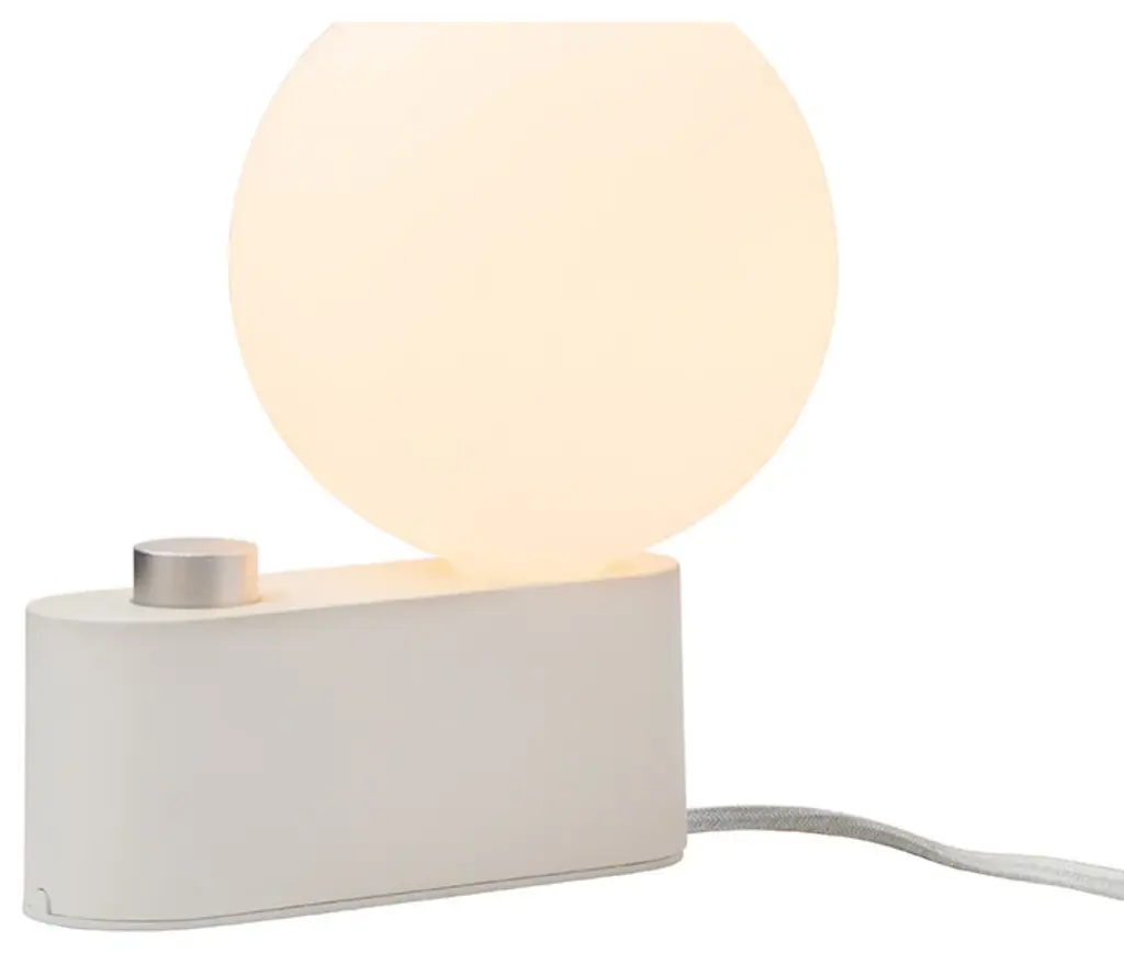 Built from lightweight aluminium and finished in a subtle Chalk white, Alumina can be used as a table lamp or wall sconce to offer multiple display options. Paired with the matte-porcelain Sphere IV LED bulb, featuring Dim to Warm technology.Features:- Built from lightweight aluminium- Powder-coated dusk white finish- Sphere IV LED bulb included- Dim to Warm technology- Custom dimmer for maximum performance- Use as Table Lamp or Wall SconceSpecifications:- Measurements: 8 5/8in L x 5 7/8in W x 9 4/8in H- Cable Length: 10ft- Wattage: 25W- Colour Temperature: 2000-2800- Lumens: 680- CRI: 95- Glass Finish: Matte White- Ingress Protection: IP20- Base Type: E26- Glass Shape: G47- Warranty: 2 years