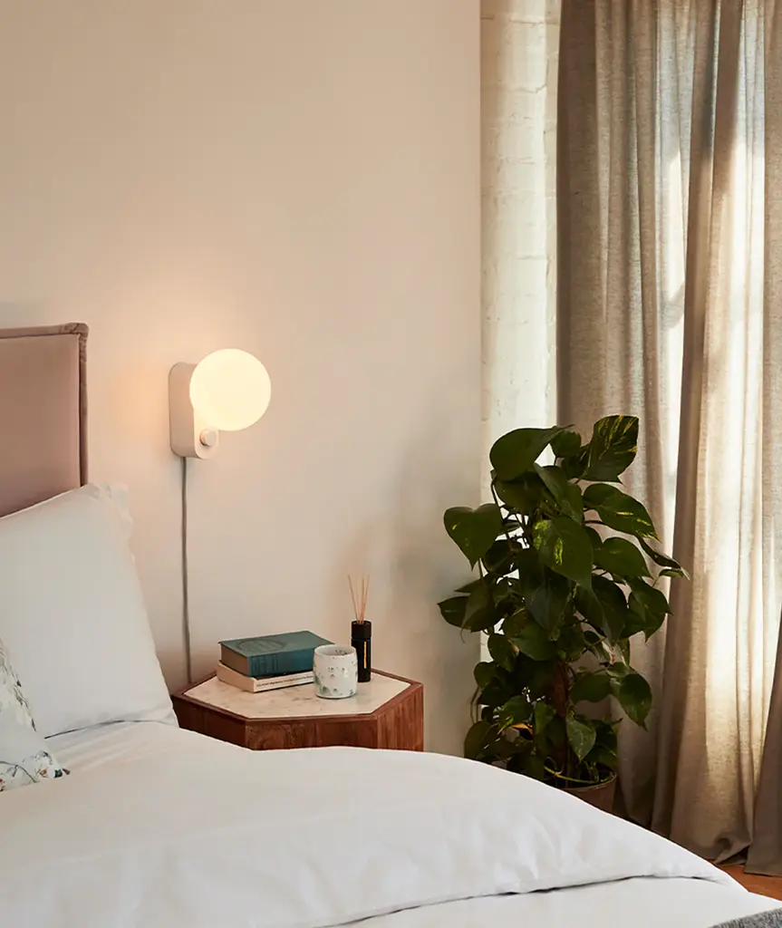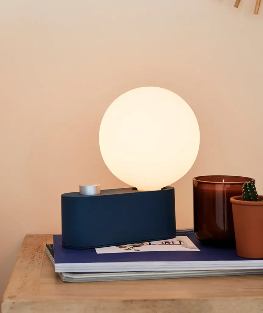 The Alumina Lamp is a multi-functional light feature designed for life on the go. Built from lightweight aluminum with a powder coated finish, Alumina can be used as a table lamp or wall sconce to offer multiple display options. Paired with the matte-porcelain Sphere IV LED bulb, featuring Dim to Warm technology.