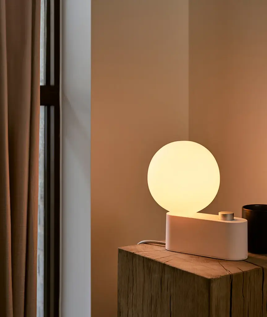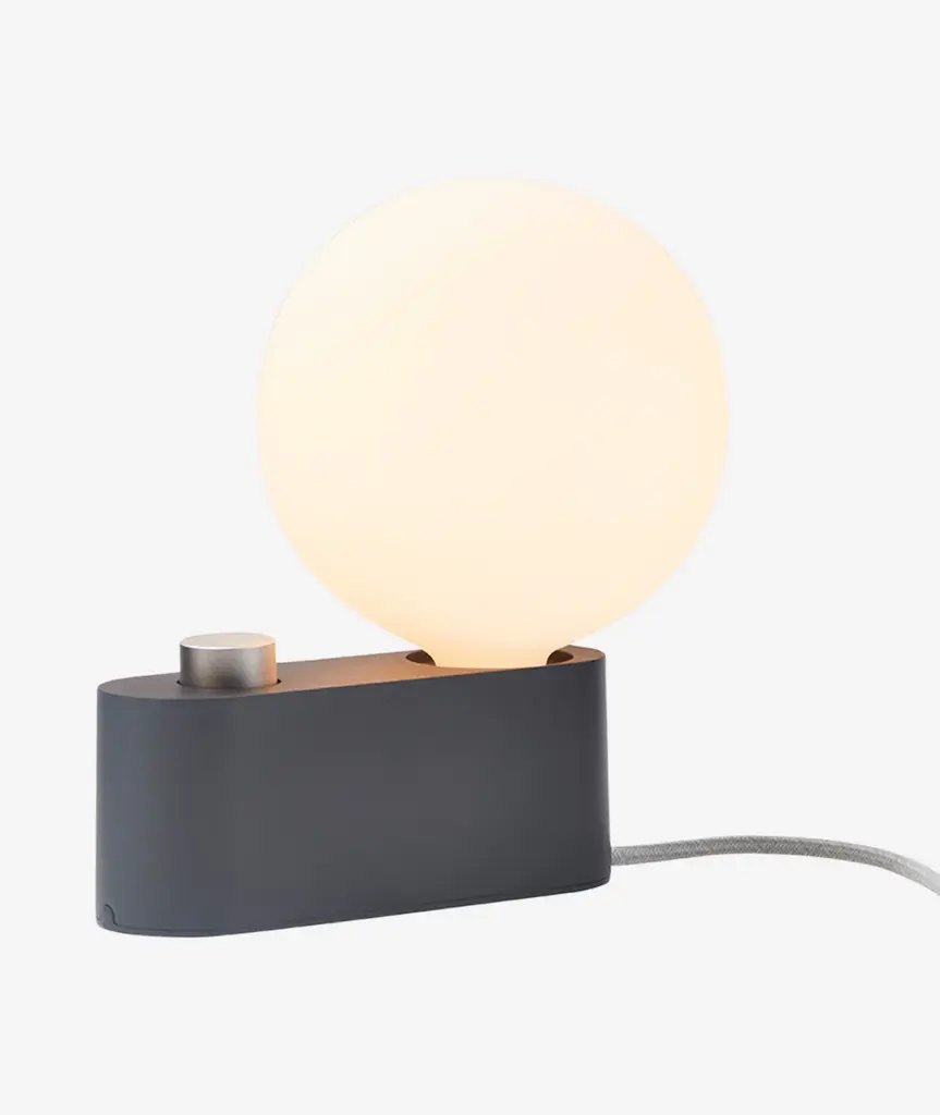 The Alumina Lamp is a multi-functional light feature designed for life on the go. Built from lightweight aluminum with a powder coated finish, Alumina can be used as a table lamp or wall sconce to offer multiple display options. Paired with the matte-porcelain Sphere IV LED bulb, featuring Dim to Warm technology.