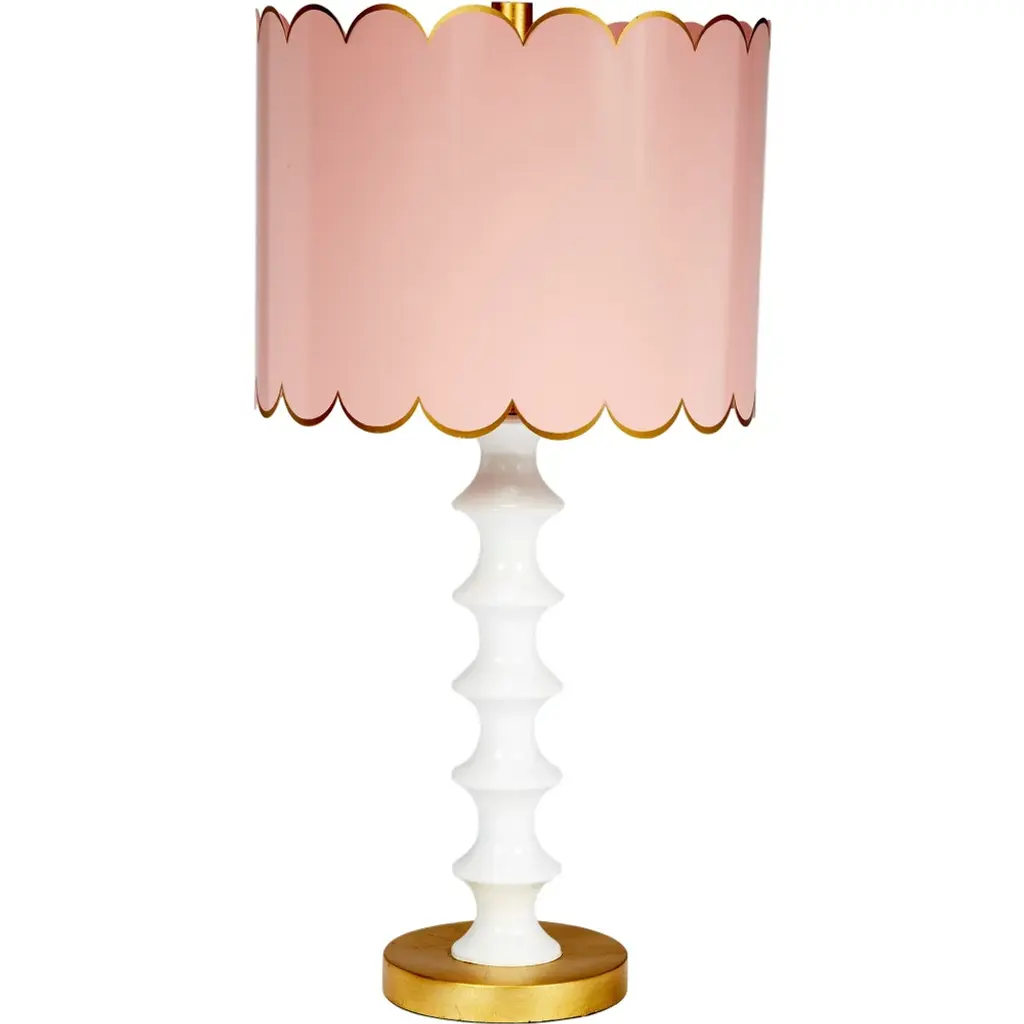 Old World Design will surprise you with the freshness of their look and style. Clean lines, warm finishes and unique style will fit any décor.. This gorgeous lamp with its scalloped shade comes in beautiful pastel shades of pink, blue, or white. Overall Height: 33.5"H Watts: 100W Shade Dimensions: 8" X 8" X 12" Boxed