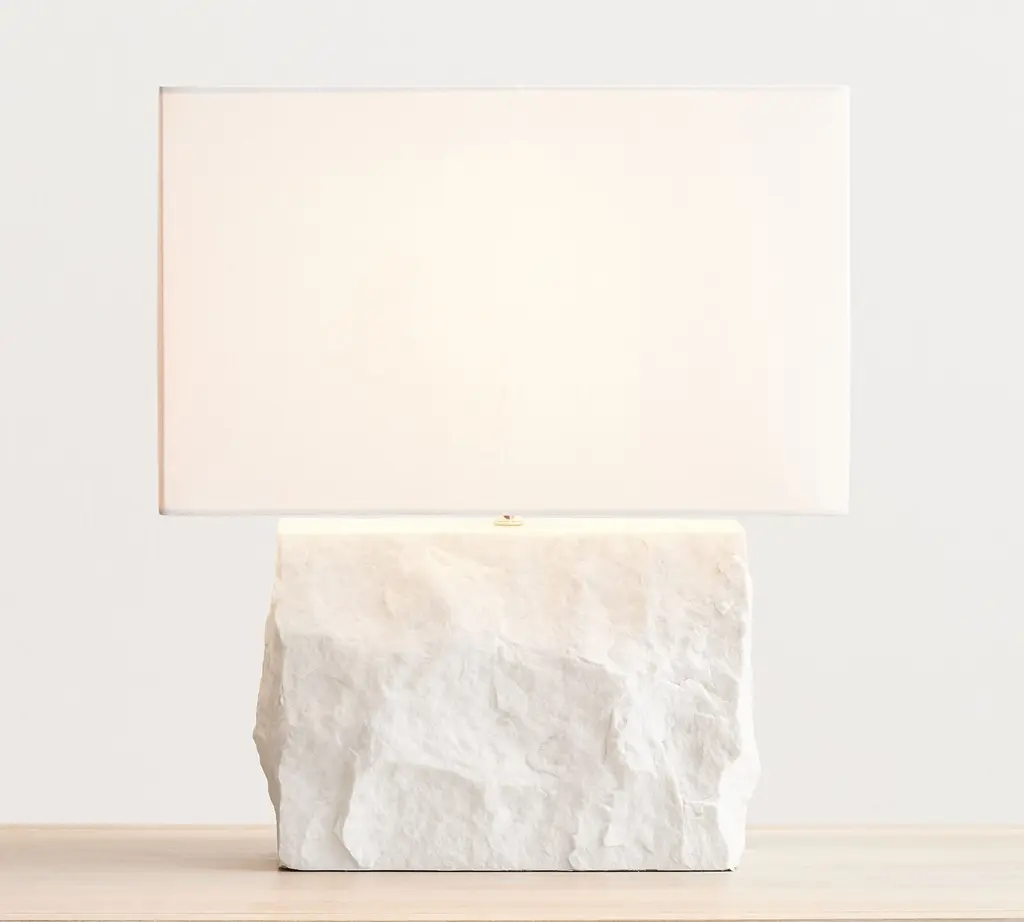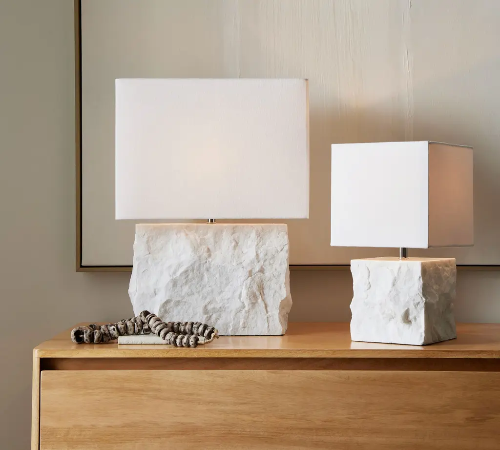 Giving new meaning to the term natural beauty, the base of our Amara Marble Table Lamp is cut from genuine, carefully selected stone and kept organic with a chisel technique. The geometric form errs on the side of modern, but the timeless marble transcends style. Choose from two sizes to fit your space.