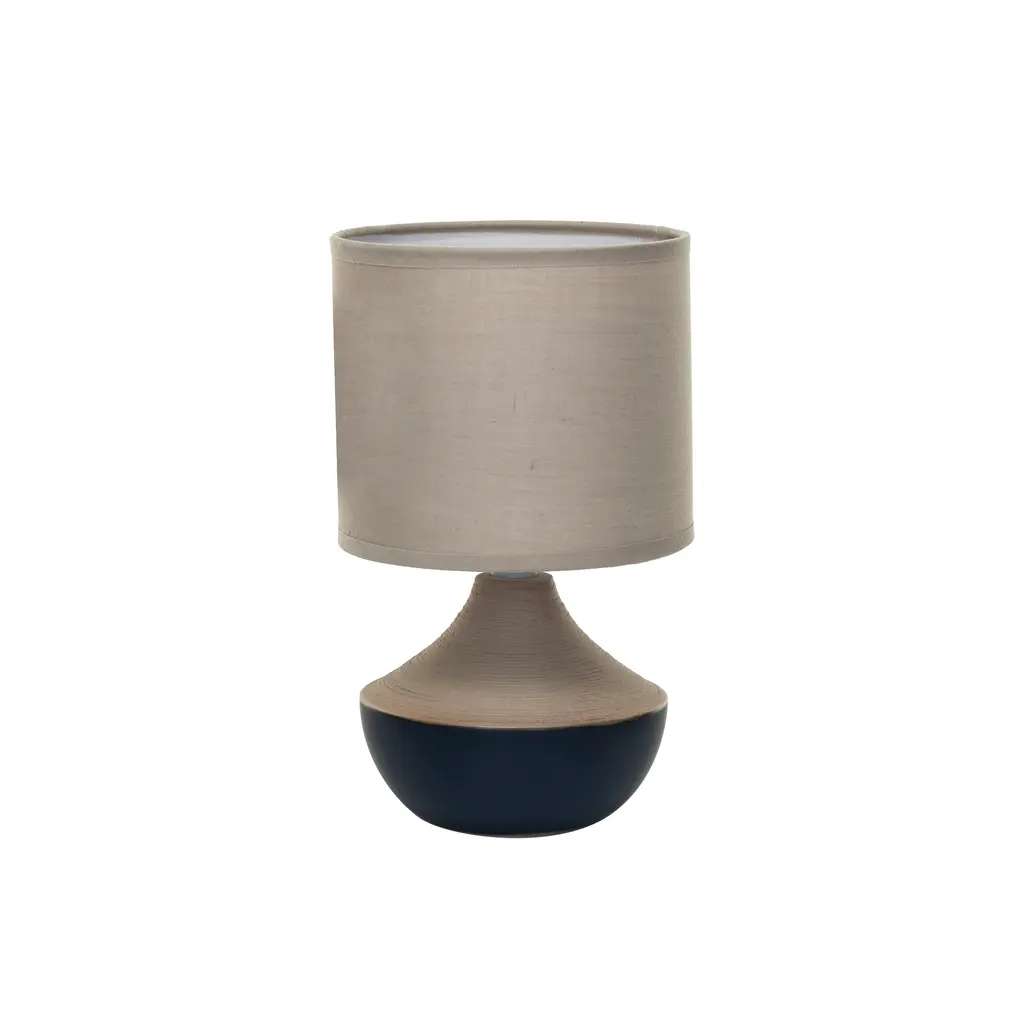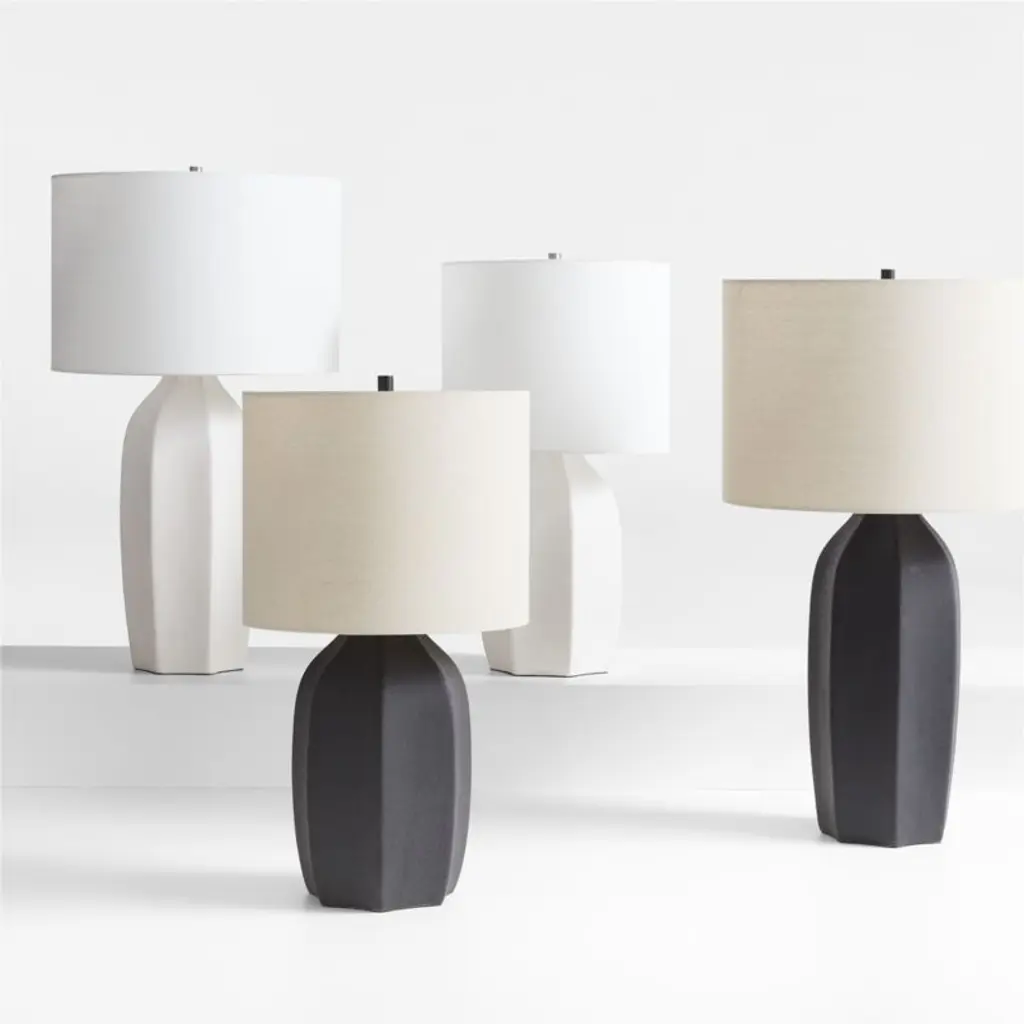 Recalling the slope-shouldered silhouette of a Chinese plum vase, our Amaryllis table lamp lights up the room with the nuanced beauty of fine ceramics. A matte black glaze coats the wide, concave facets of the ceramic base with a distressed, stone-like finish that's echoed in the texture of the neutral linen-blend shade. We love the play of light on the sculptural base of our exclusive Amaryllis large ceramic table lamp.