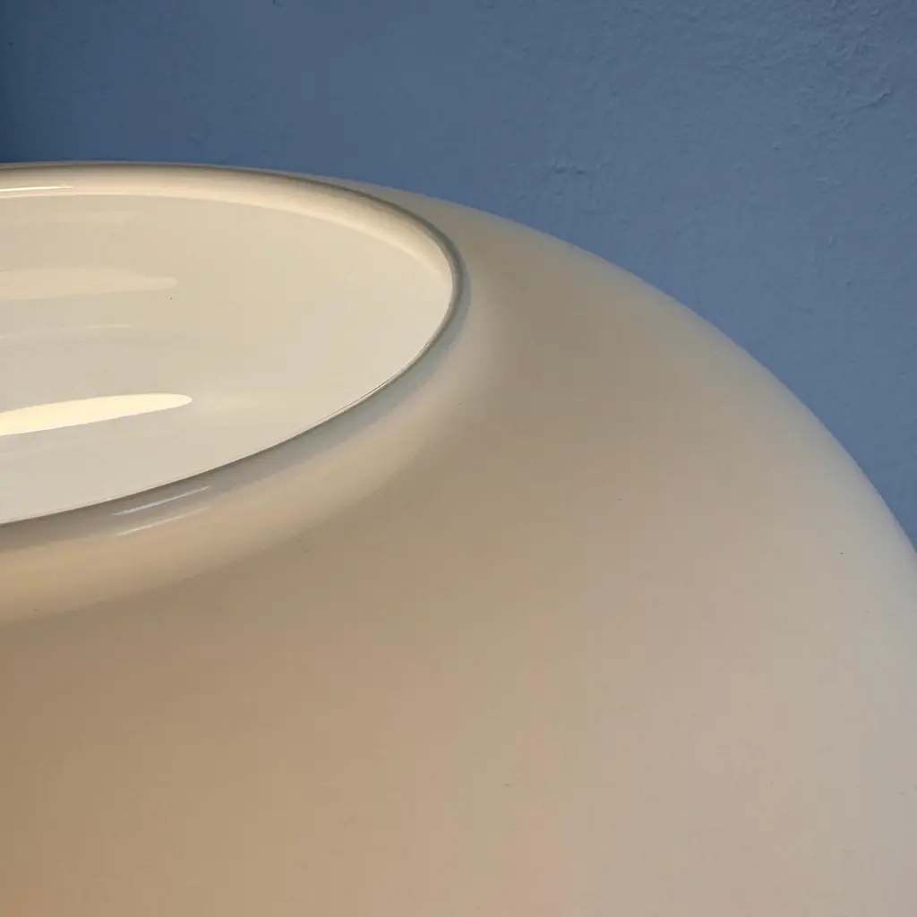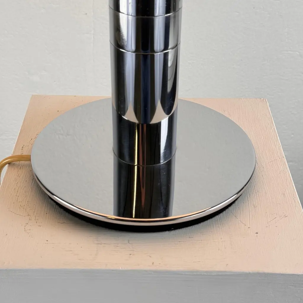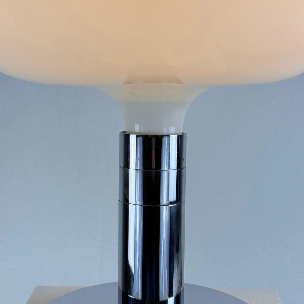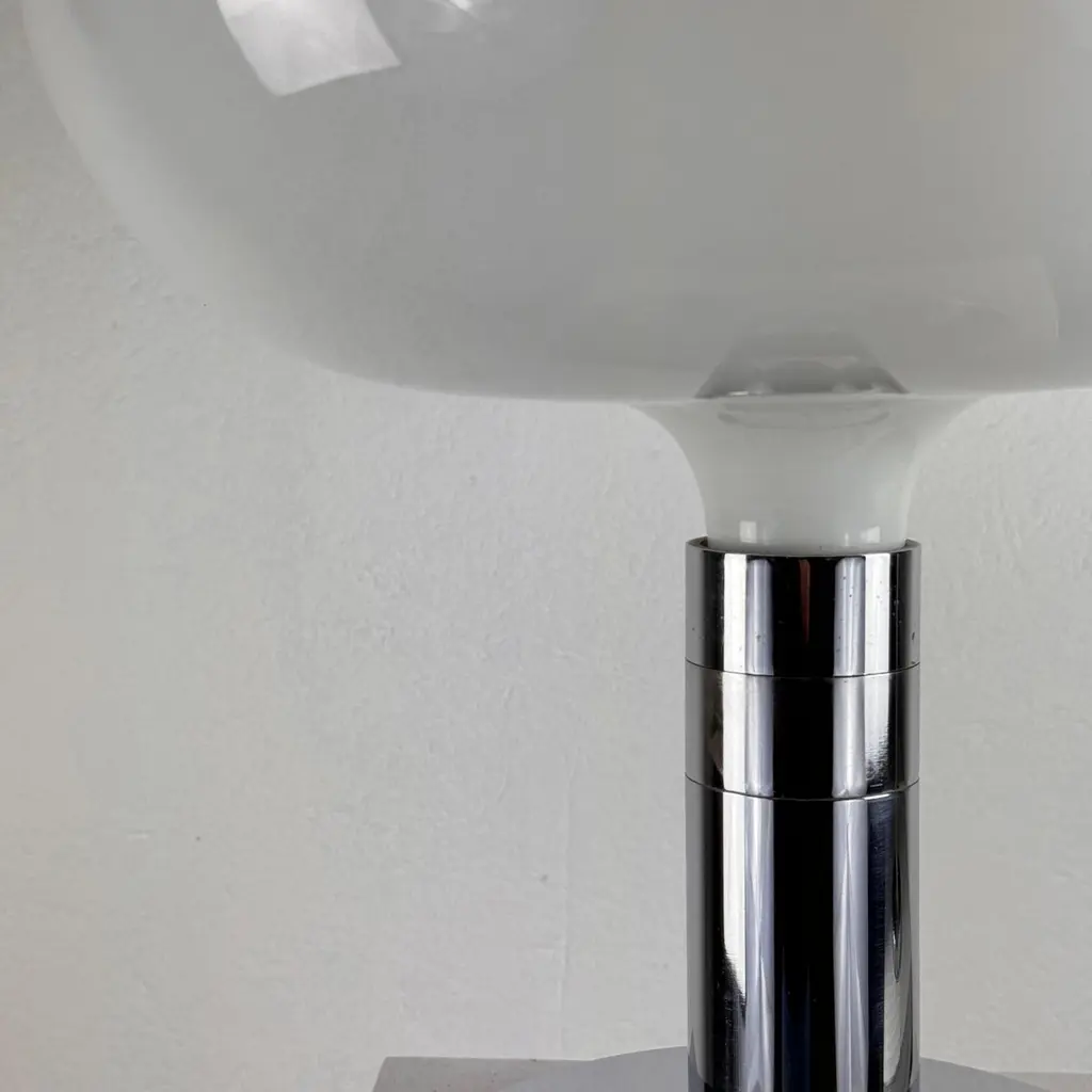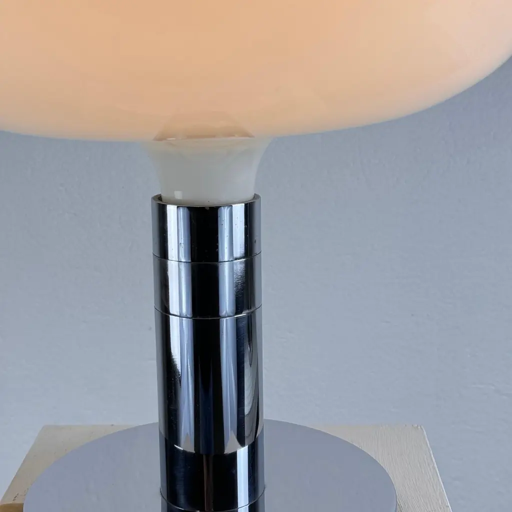 Created by the esteemed Italian designers Franco Albini and Franca Helg, this lamp was produced by Sirrah in the 1960s-70s, capturing the essence of Italian craftsmanship and innovation. The lamp stands 50 cm tall with a diameter of 40 cm, making it a striking yet versatile addition to any interior. The base is crafted from high-quality chrome-plated metal, providing a sturdy foundation with a sleek, mirror-like finish that adds a touch of modern sophistication. The opaline glass diffuser is expertly shaped to create a soft, warm glow, offering both functionality and a pleasing aesthetic. The diffused light enhances any room, making it ideal for creating a cozy atmosphere. This AM/AS lamp is an authentic piece, marked with the manufacturer's stamp, which verifies its origin and ensures its place in design history. The combination of Albini and Helg’s design expertise and Sirrah’s manufacturing excellence makes this lamp a valuable collector’s item. The lamp remains in excellent vintage condition, with minimal signs of wear consistent with its age. These minor imperfections only add to its character and historical value, showcasing its journey through time. Franco Albini and Franca Helg are celebrated for their contributions to modernist design, blending form and function seamlessly. The AM/AS lamp reflects their philosophy, characterized by clean lines, minimalist aesthetics, and practical elegance. This lamp is not merely a source of light but a piece of art that embodies the spirit of mid-century modernism. The AM/AS table lamp’s design is versatile, making it a perfect fit for various interior styles, from modern and contemporary to classic and eclectic. Whether you place it on a desk, bedside table, or in a living room, it will undoubtedly become a focal point and conversation starter.