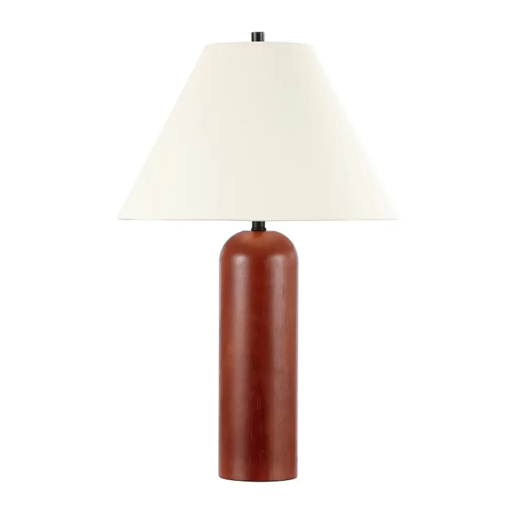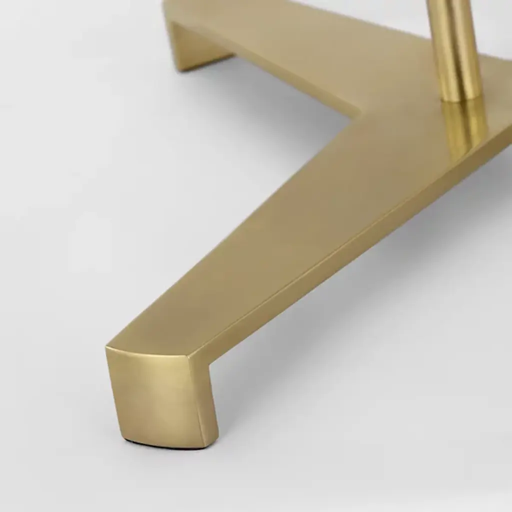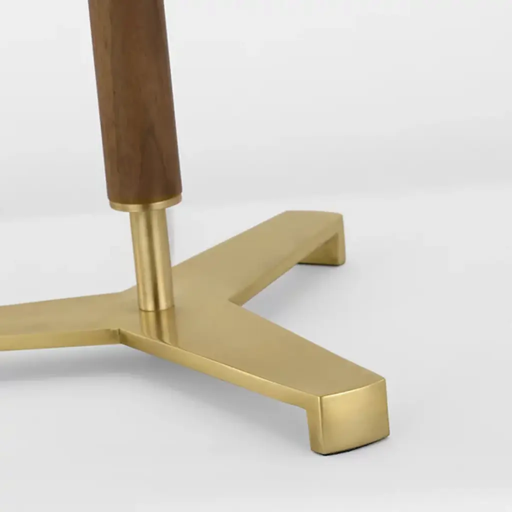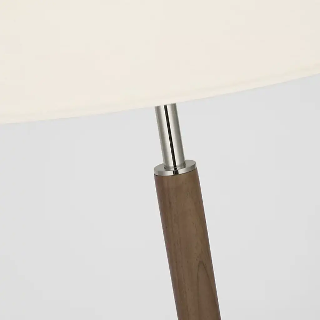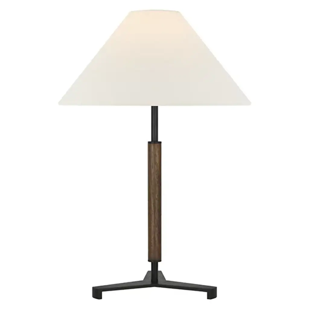 The Amaya Table Lamp from Visual Comfort Signature represents Ray Booth's thoughtful material pairing. The cylindrical wooden column adds natural warmth to the center of the design, while brass accents at the top, base, and distinctive tripod foot create structural interest. The poised proportions of this desk lamp make it ideal for executive desks, library tables, or beside drawers where its architectural presence can dialogue with other fine furnishings.