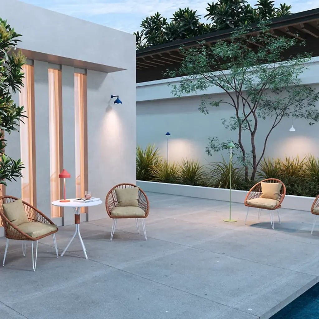 The Amelie Pro LED Outdoor Table Lamp from Zafferano America is designed by Sara Moroni. Crafted from high-quality die-cast aluminum, this outdoor table lamp exudes elegance. Its streamlined design is complemented by a polycarbonate diffuser shade, which provides gentle illumination to your outdoor space. Equipped with a silicone hook and cap, Amelie Pro offers versatility, allowing you to effortlessly transform it into a suspension lamp. This table lamp comes with a contact charging base. Please note that the charging plug is not included, and the approximate charging time is 6 hours. It boasts a base touch dimmer.
