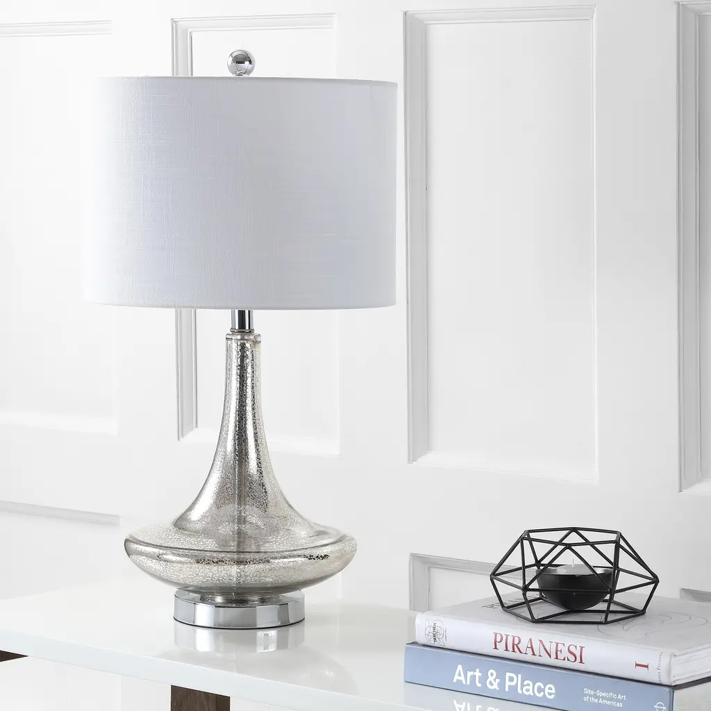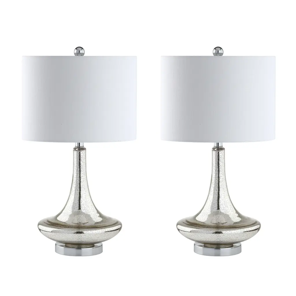 Ames 25.5" Glass Teardrop Led Table Lamp, Mercury Silver/chrome (Set Of 2) By Jonathan Y - Mercury Silver