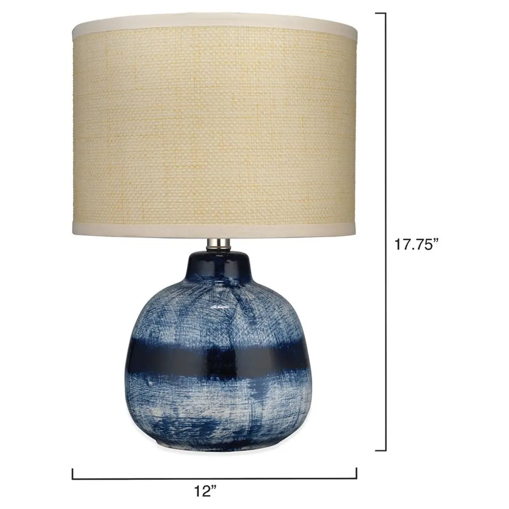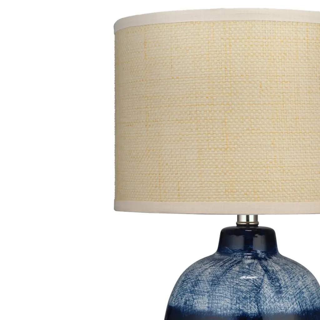 Amir Global Bazaar Raffia Shade Indigo Blue Ceramic Table Lamp