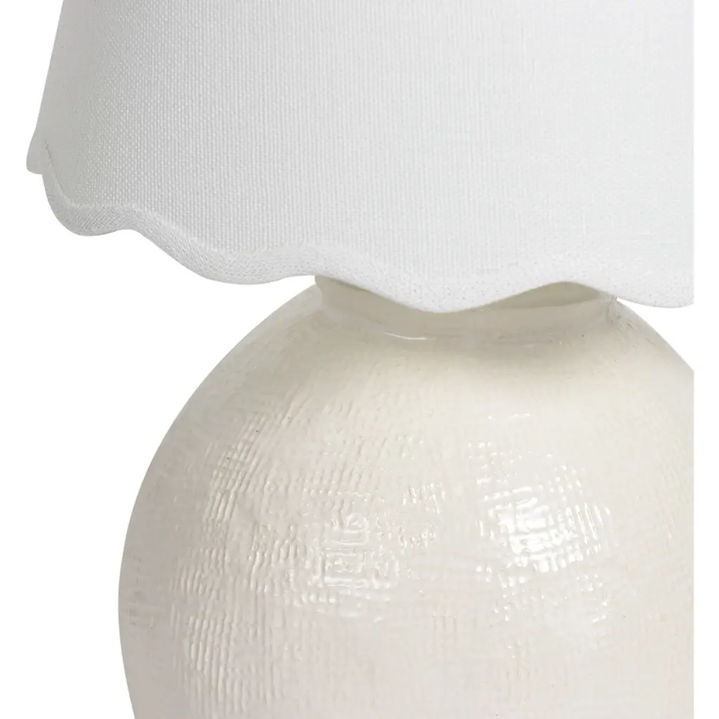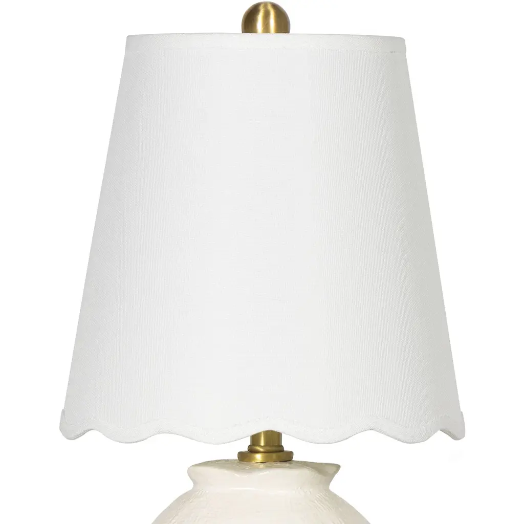 Introducing the Amoria Mini Lamp - a petite delight that brings a touch of whimsy to any space. Its wavy scallop-like shade adds a playful charm, while the white ceramic body and natural brass hardware exude a timeless elegance. Compact yet captivating, the Amoria Mini Lamp is the perfect accent piece to infuse your space with femininity and flair.