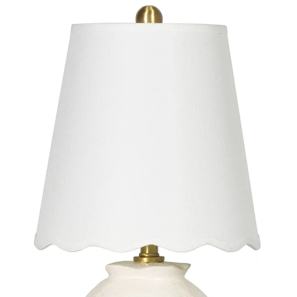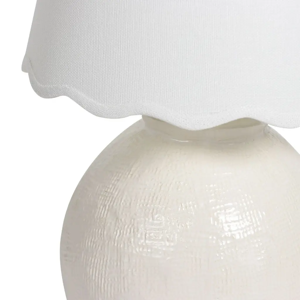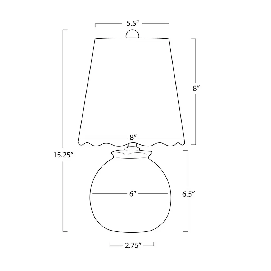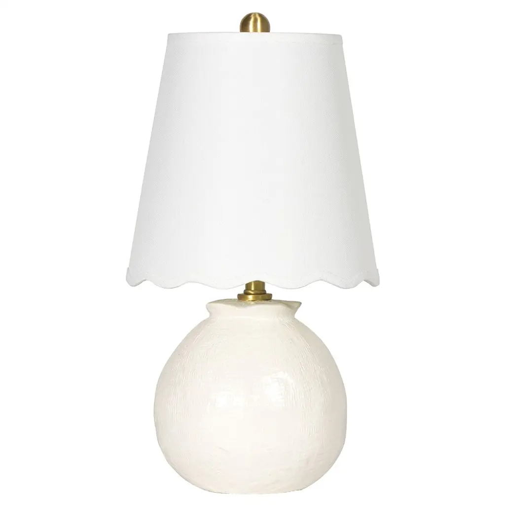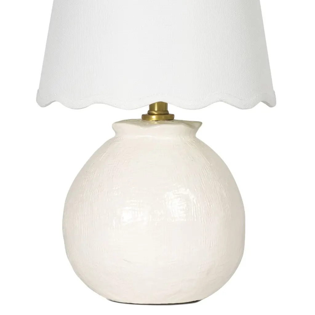 Introducing the Amoria Mini Lamp — a petite delight that brings a touch of whimsy to any space. Its wavy scallop-like shade adds a playful charm, while the ceramic body and brass hardware exude a timeless elegance. Compact yet captivating, the Amoria Mini Lamp is the perfect accent piece to infuse your space with femininity and flair.