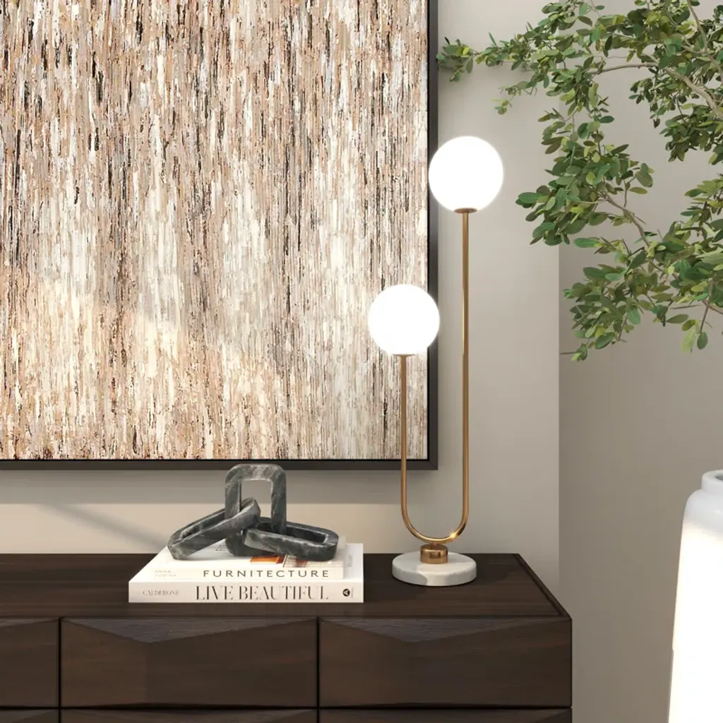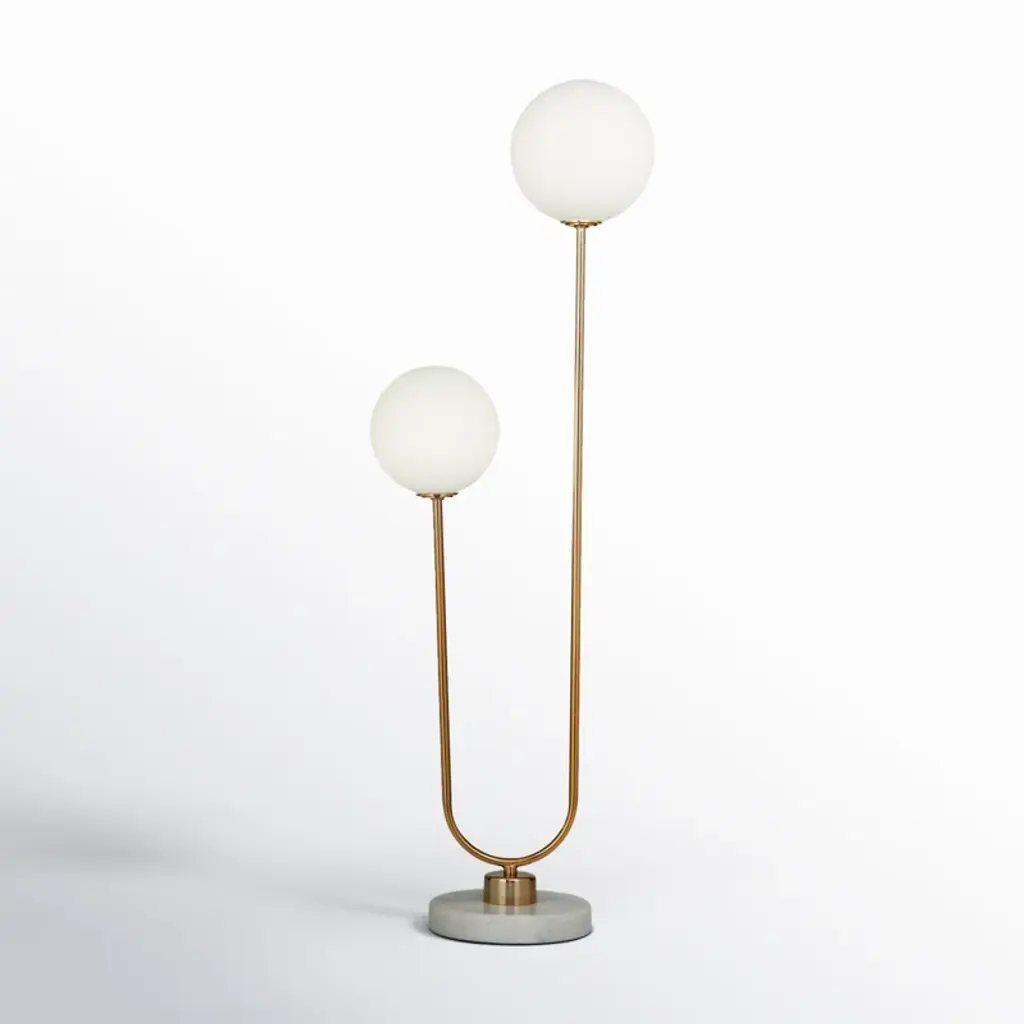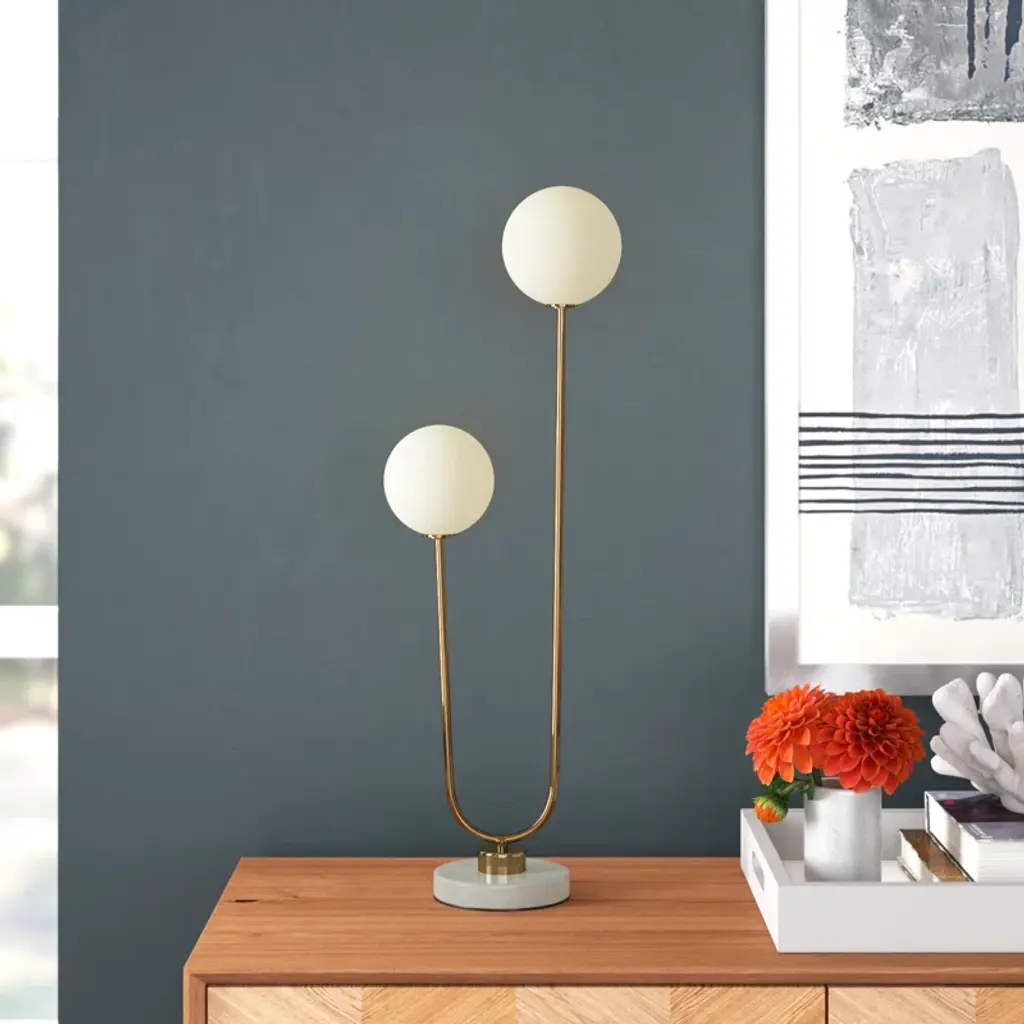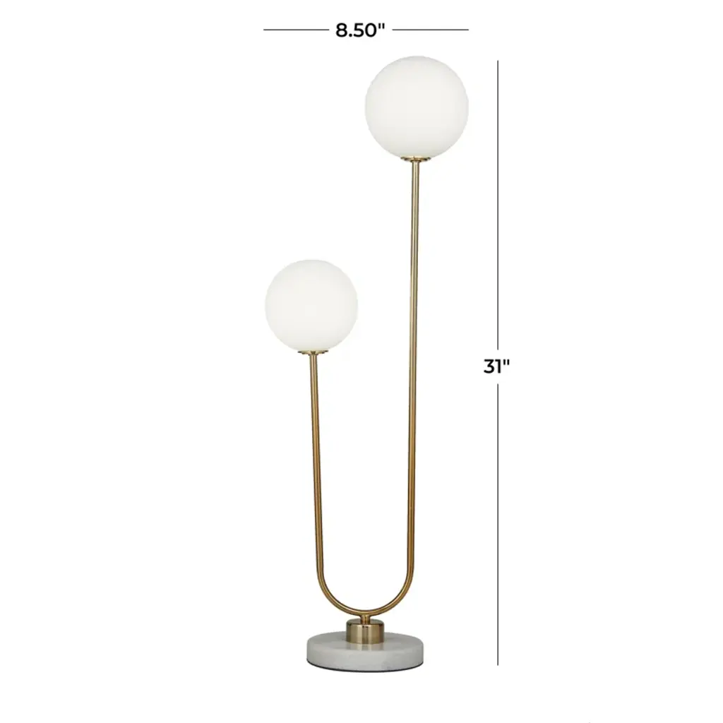 Illuminate in style! Crafted from iron and marble, this globe lamp is a true blend of form and function. Its two LED bulbs cast a warm white light that's perfect for cozy evenings or reading sessions. The glass globe shade brings an ambient glow to your space, effortlessly enhancing the mood. Plus, it features a built-in electrical outlet for added convenience. Remember, every marble base is unique, adding to the charm of your home decor. Light up, and let this lamp be your statement piece.