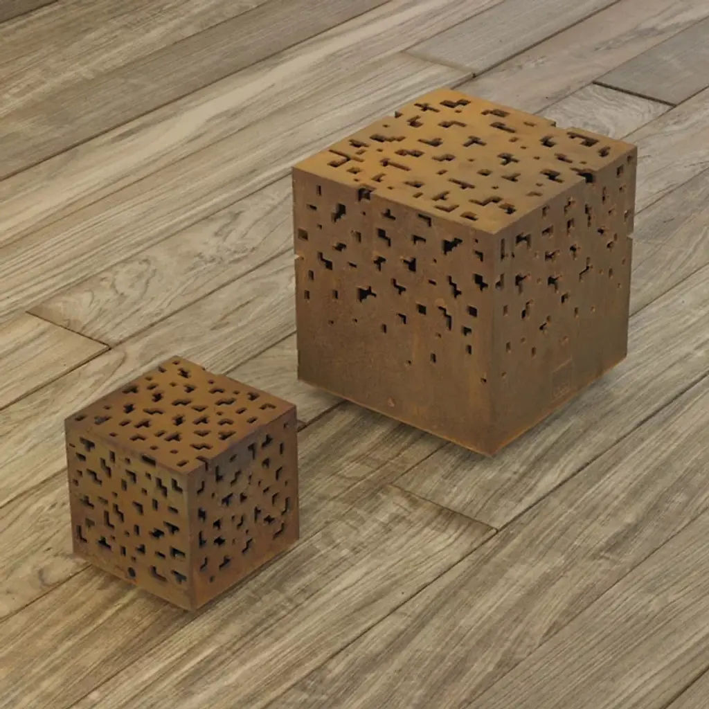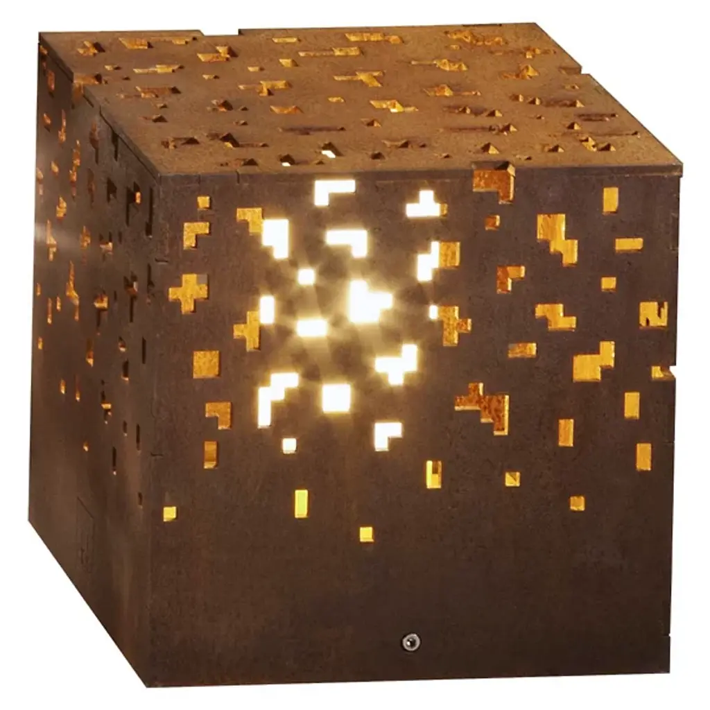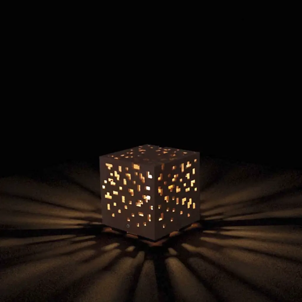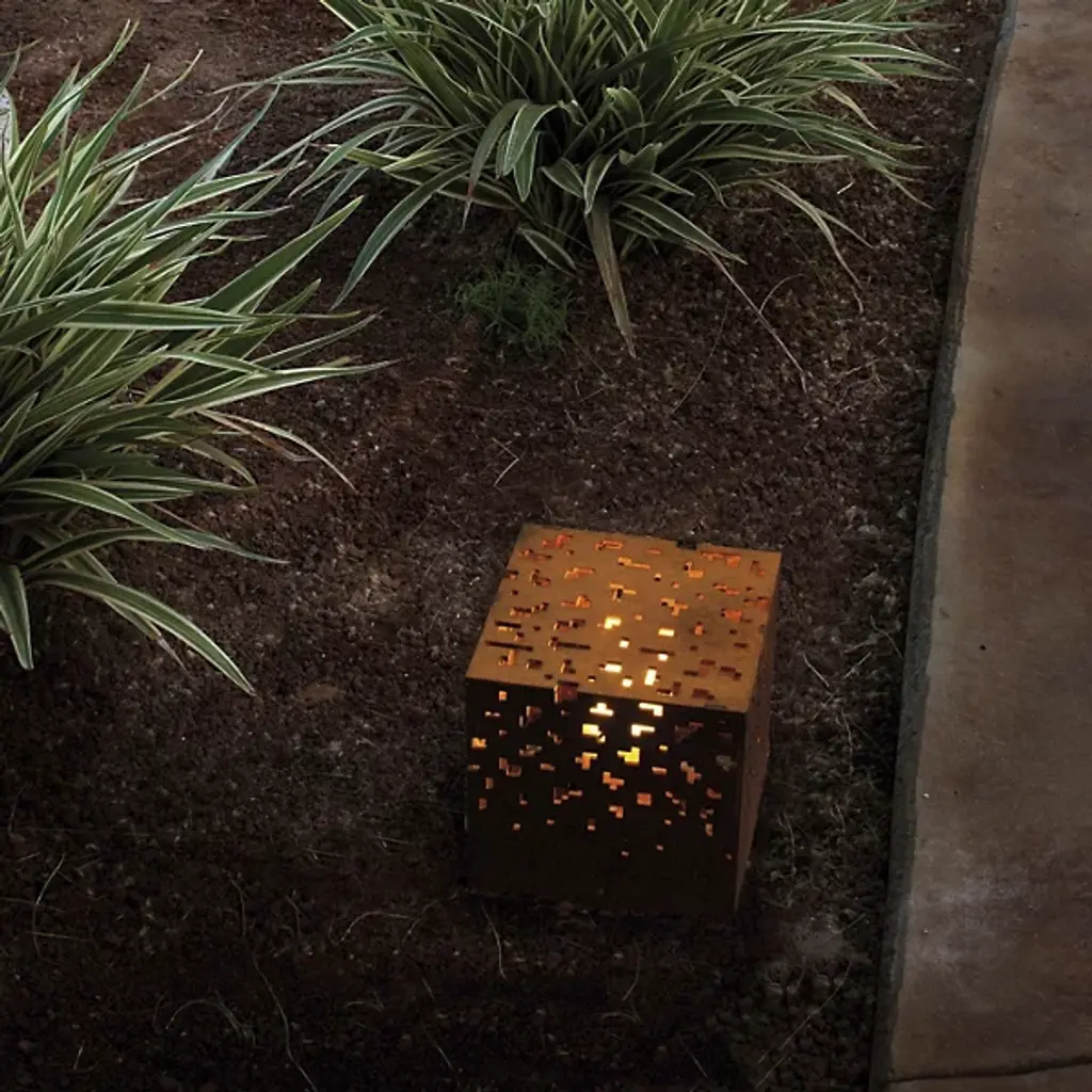 The AMS Outdoor Path Light from B.lux exemplifies a focus on stylish simplicity at the behest of its designer David Abad. Ideal when emplaced close to the ground or on a lifted platform, the strong steel cube structure reaches up around the bright lamping, using a series of square-pixelated cutouts on each side to shed small scatterings of direct light outward. The structure’s interior also reflects some ambiance from the interior, creating a mix of brightly-projected patterns amidst a softer glow.