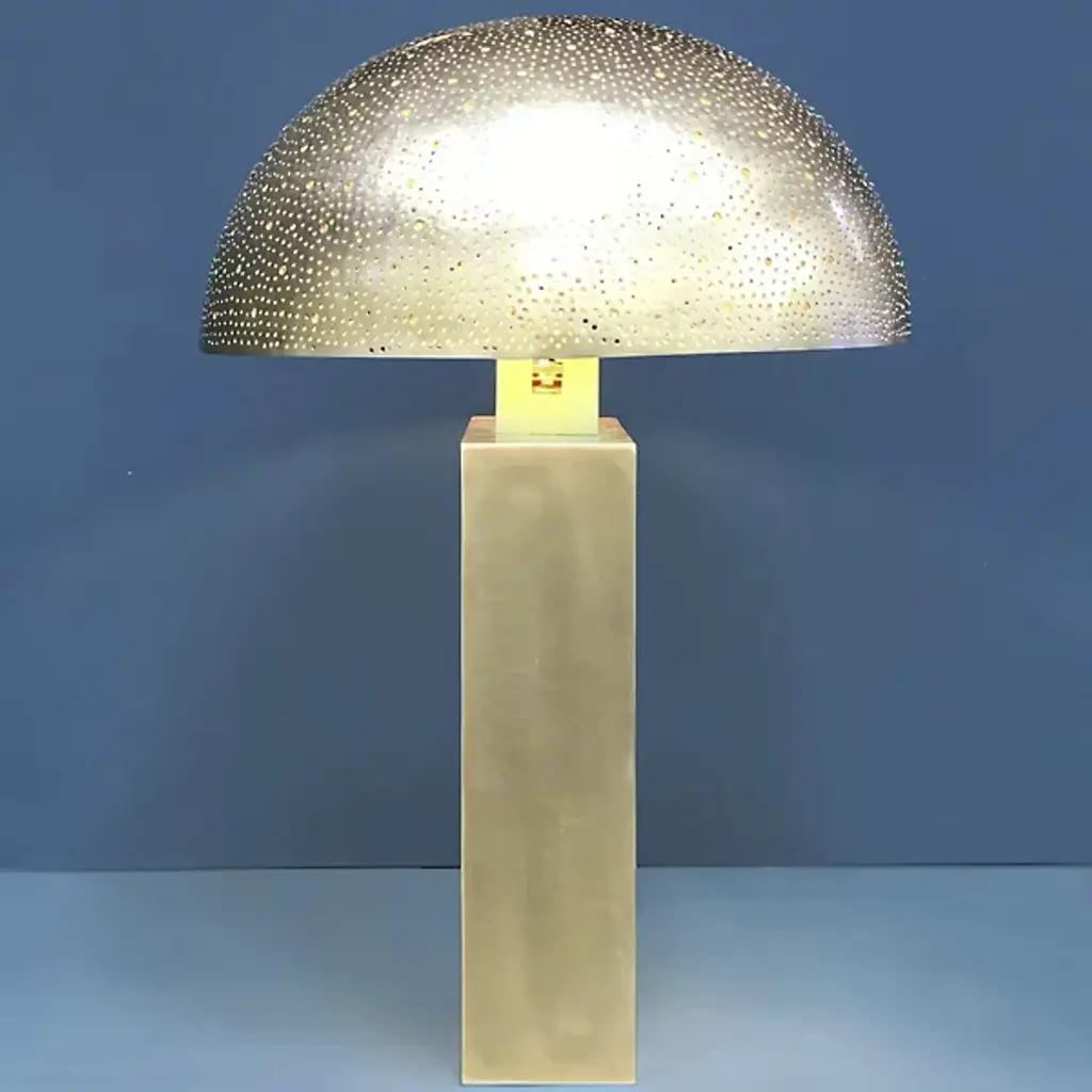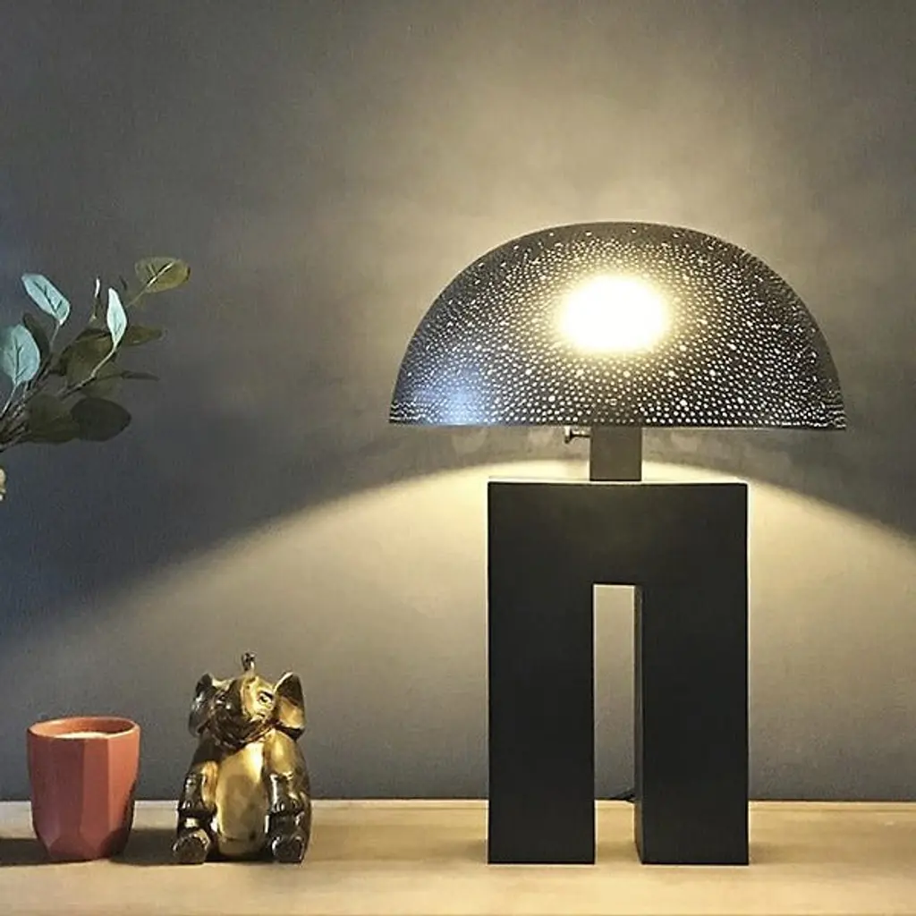 Decadent and distinctive. The Amur Table Lamp is a contemporary and luxurious light furnishing presented by Dounia Home that boasts eco-friendly appeal alongside artisan quality craftsmanship. The Amur Table Lamp comes LED capable, an illumination option that offers a longer lifespan and lower energy consumption than traditional lighting solutions. It was handmade in Morocco by ethically compensated Artisans, and each piece crafted at Dounia Home is created in small batches for unparalleled quality.