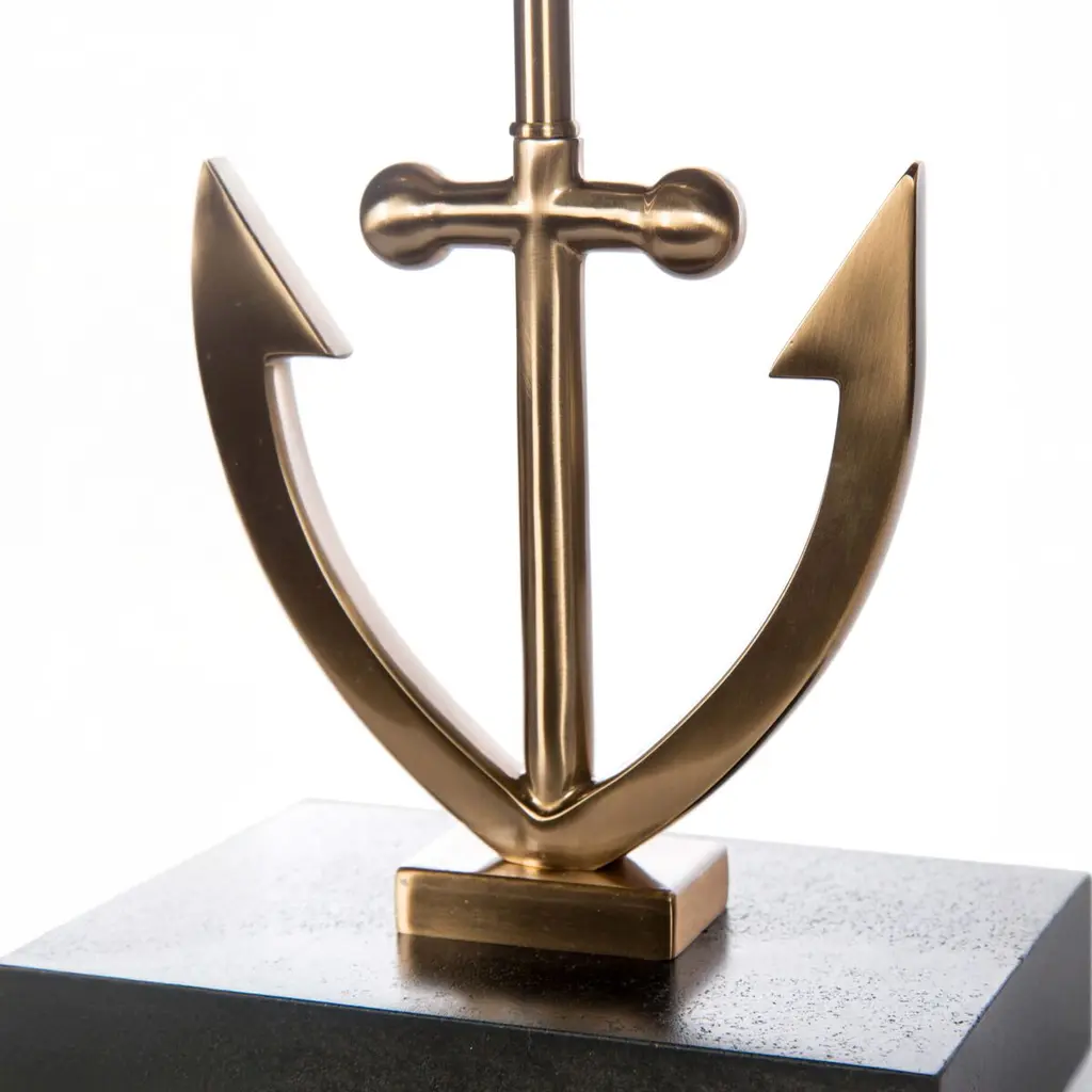 Drenched in nautical charm, the design form of this modern table lamp makes a perfect addition to coastal getaways as well as inland ranch homes. Enjoy a cheery look with an anchor-style emblem on a metal body, as a rectangular base coordinates with a sleek linen drum shade. Three-way lighting offers distinct utility with lighting levels suitable for reading, standard illumination, and soft night-lighting.