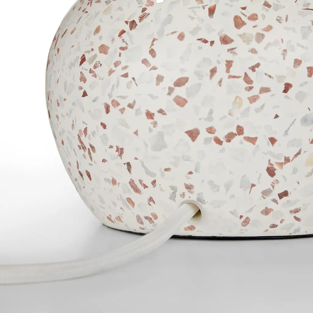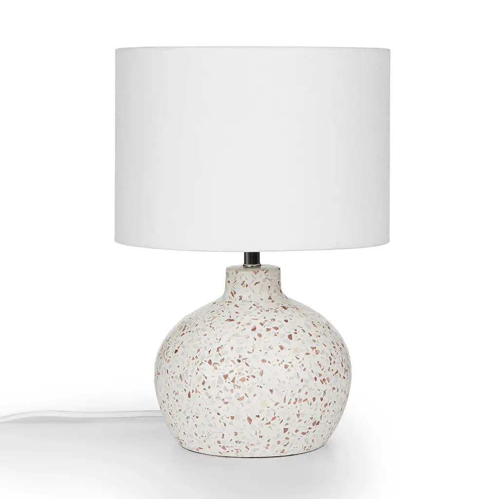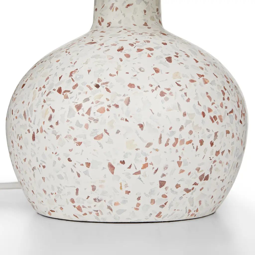 A true highlight. The gorgeous terrazzo base of the Ando Lamp is complemented by a pristine white jute drum shade. Shine on.