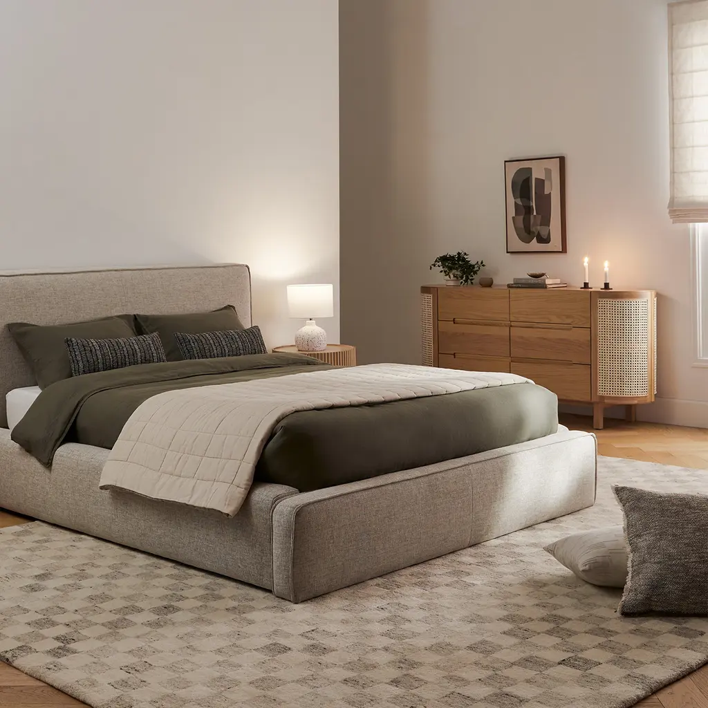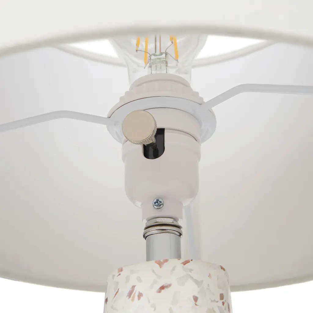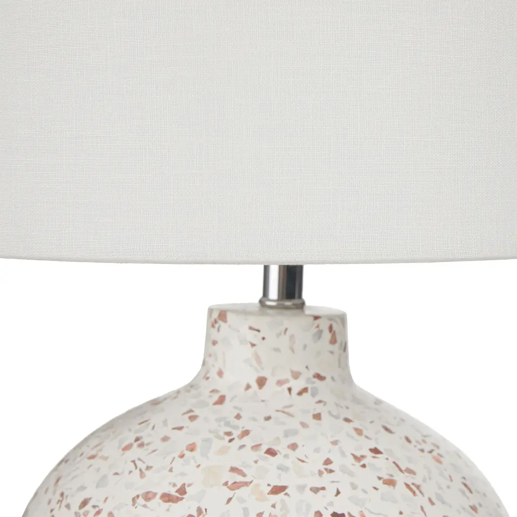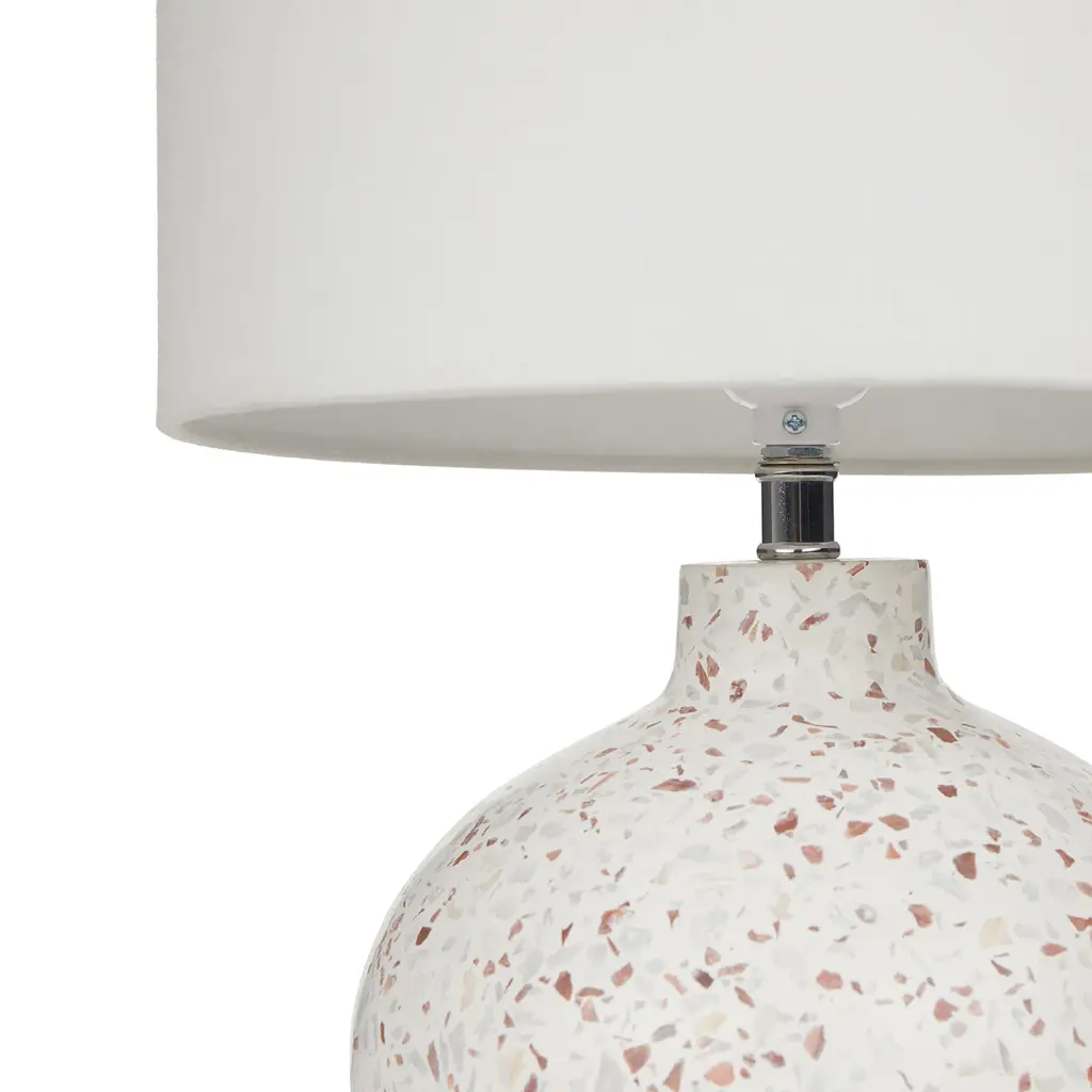 A true highlight. The gorgeous terrazzo base of the Ando Lamp is complemented by a pristine white jute drum shade. Shine on.
