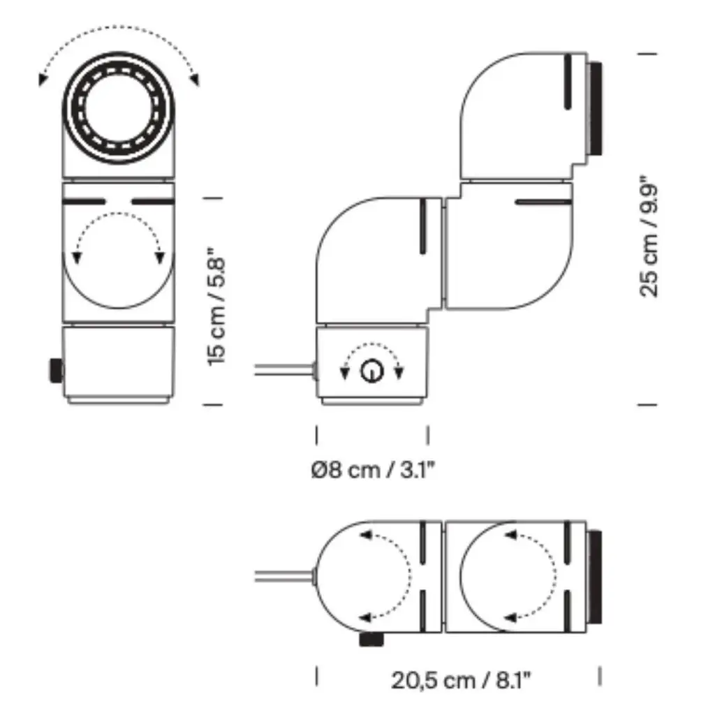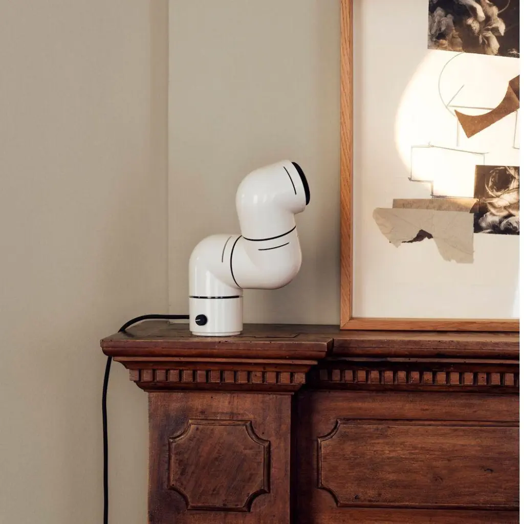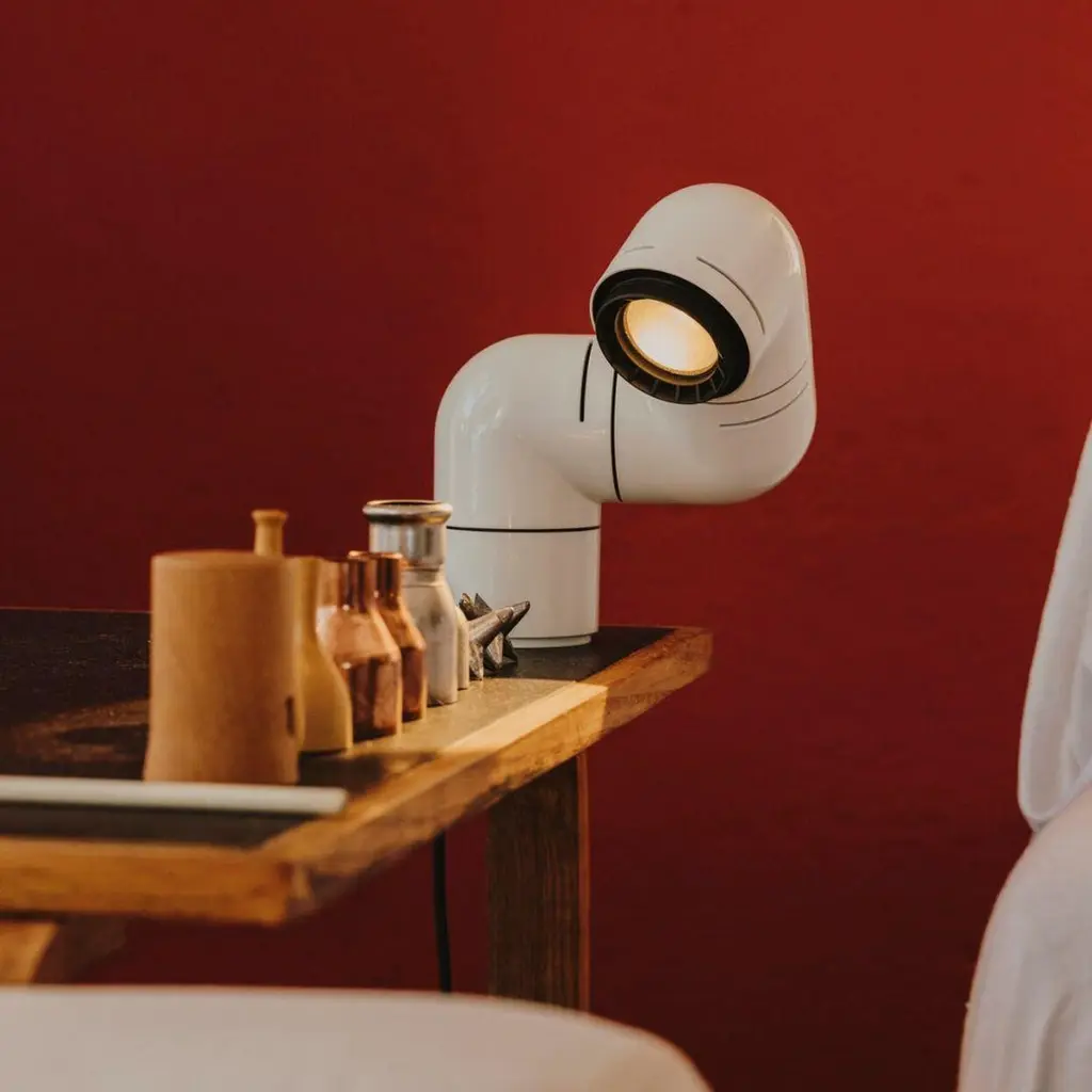 Andre Ricard 'Tatu' LED table lamp in white ABS for Santa & ColeFounded in 1985 in Barcelona, Santa & Cole produces iconic pieces by such luminaries as llmari Tapiovaara, Miguel Milá and other European icons with a commitment to faithfully re-edition their legendary designs with uncompromising attention to detail, materials and craftsmanship.The 'Tatu' lamp was first created in 1972 by Andre Ricard who drew inspiration from an airplane's overhead light and its ability to not disturb fellow passengers. Foldable and adjustable, much alike an armadillo from which 'Tatu' gets its name, the 'Tatu' consists of three parts that rotate independently. Combined with an adjustable light intensity and focal length the 'Tatu' can be used on a shelf, desk, bedside table, or even as a wall light (fittings included). It quickly became a pop-art icon throughout Europe and has now been meticulously updated and re-editioned by Santa & Cole with a dimmable integrated LED in ABS plastic.Price per item. Available in unlimited quantities. Variations available include choice of white or red as well as in a floor and wall lamp version. This listing is for the 'Tatu' table lamp in white ABS.In stock lead time 1-2 weeks. Out of stock can add an additional 4-8 weeks or more. Please note that lead times and inventory availability are subject to change without notice. For time sensitive orders, please contact us for current lead times prior to purchasing. Kindly note that items must ship from Santa & Cole’s Barcelona warehouse, so 1st Dibs arranged shipping and local pickup are not available. Shipping cost quoted is per item and cannot be combined. Free standard shipping on all lighting orders less than $17,000.Illuminated via integrated dimmable LED providing 6 watts of 2700K color with 171 lumens and CRI 90. Powered by 6.5' black cord. This lamp is UL listed and IP20 rated.Made to order. All sales are final.