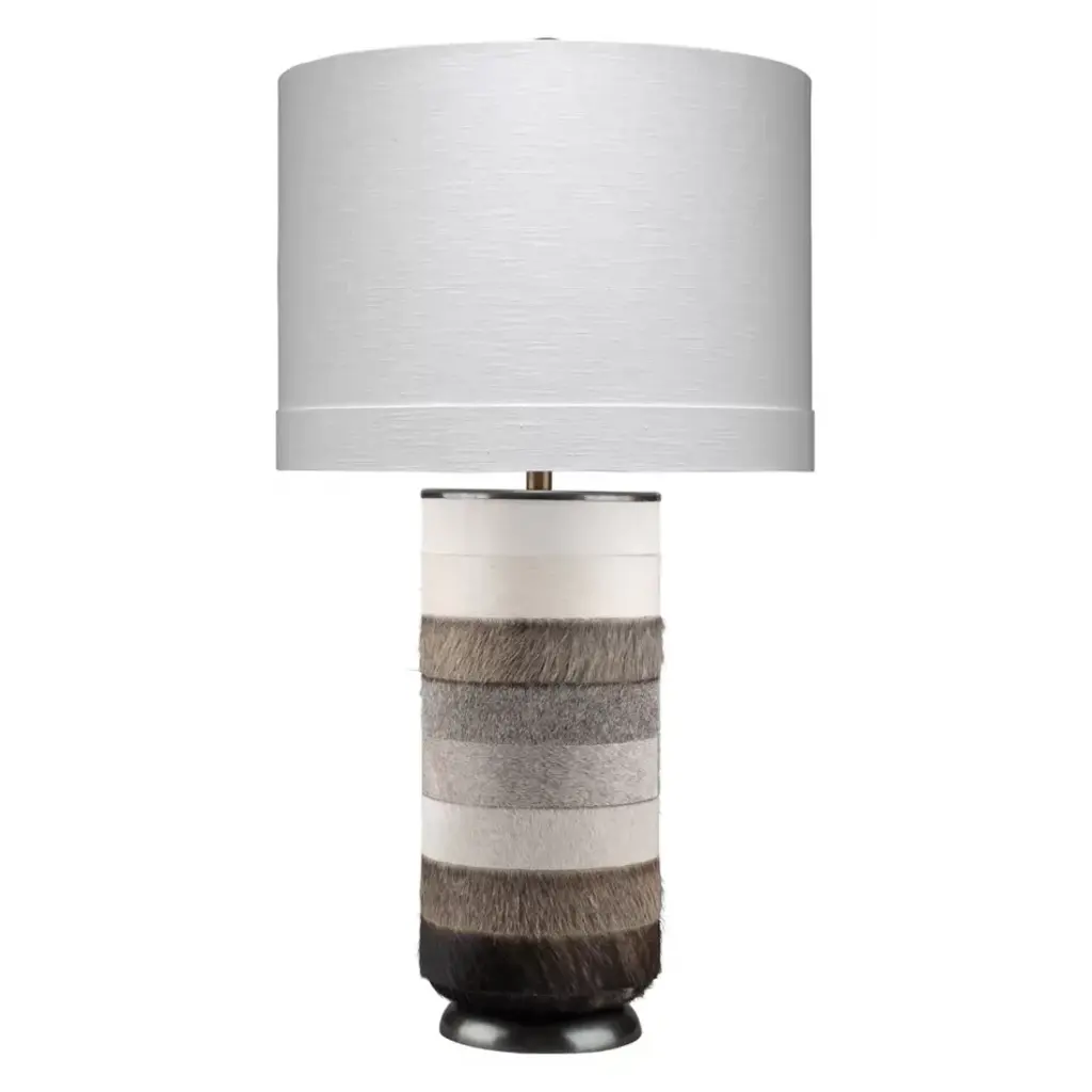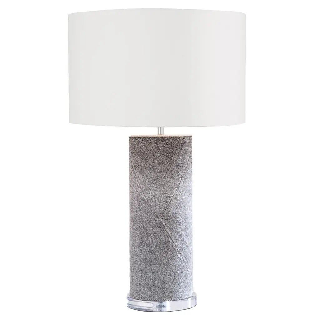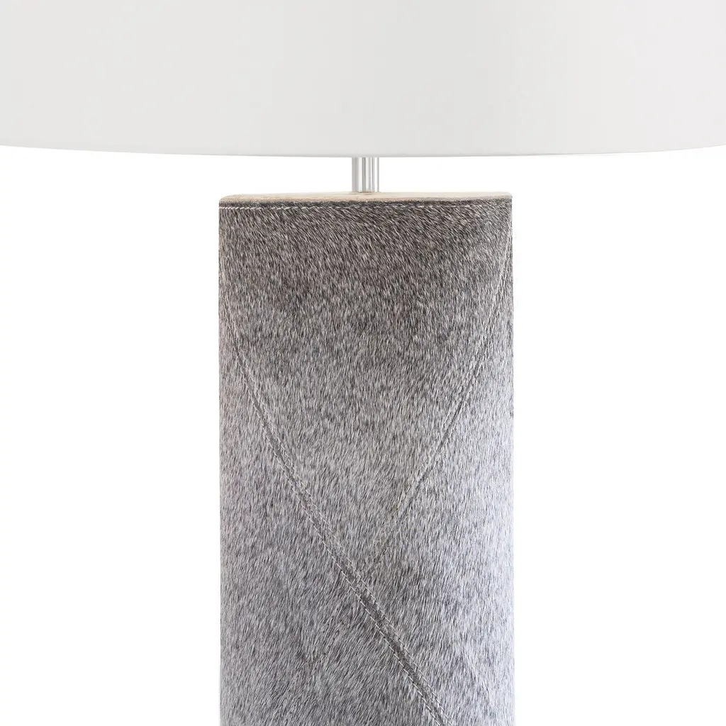 Add a one-of-a-kind textural element to your home with the Andres Column Table Lamp. A soft gray hair on hide base topped with a natural linen shade brings luxe and rustic comfort to your home.