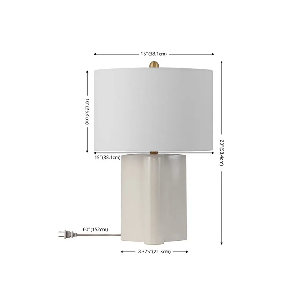 Illuminate your space with the serene elegance of the Anessa ceramic table lamp. Standing at 23 inches, this lamp brings a touch of sophistication to your home decor. Its cream hue, paired with a sleek brass accent, complements a variety of interior styles, adding a warm and inviting glow to any room. The lamp features a beautifully crafted ceramic body that exudes timeless charm. Topped with a fabric shade, it softens the light to create a cozy and welcoming ambiance. Whether placed on a side table in the living room or as a bedside companion, the Anessa lamp is designed to enhance your space with its classic appeal. Perfect for those who appreciate understated elegance, the Anessa table lamp offers both functionality and aesthetic appeal. Its neutral color palette ensures seamless integration into your existing decor, making it a versatile choice for any setting. Embrace the subtle beauty and charm that the Anessa table lamp brings to your living space.